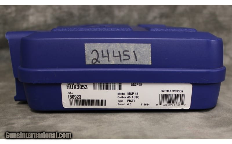 Description: Smith & Wesson M&P 45 with orginal box, 2 Magazines and backstraps in excellent conditon. .45 ACP SOLD Metal Condition: Excellent Bore Condition: Bright & Shiny Barrels: 4.5 Triggers: SA Sights: 3 White DOTS Item Location: Auburn Hills, MI |