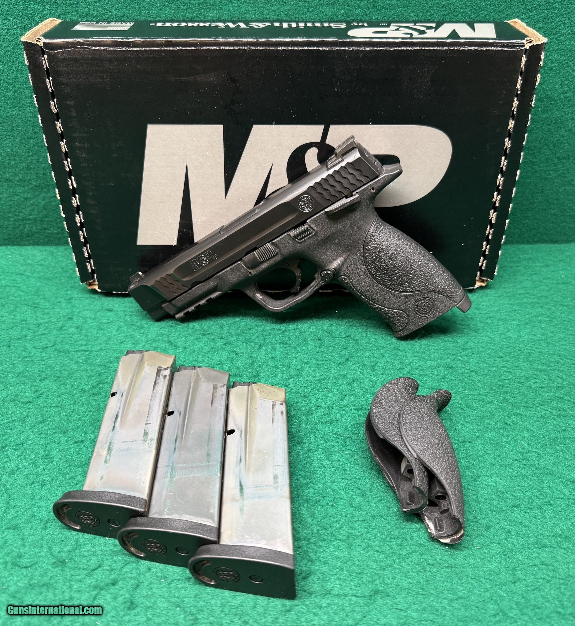 Description: Guns Listing ID: 585218 This listing is for a USED Smith & Wesson M&P45 45 ACP Blued Finish Manual Safety 4.5\" BBL 10+1. This is a used gun, it has been fired and will have residue present. This Smith & Wesson M&P45 is chambered in 45 ACP, and it will hold 10 rounds in the magazine. This pistol comes with a 4.5 inch barrel. It comes equipped with a fixed front sight, and a fixed rear sight. There are a few light scratches present around the slide, and there are some rust spots present around the rear sight. The action appears to be in good condition, the finish appears to be in good condition, and the bore appears to be in good condition. This pistol comes with three 10 round magazines, two extra backstraps, and a cardboard Smith & Wesson box. This would be a great self-defense or plinking pistol. ** DISCLAIMER** THIS FIREARM HAS NOT BEEN TEST FIRED*** Manufacturer: SMITH & WESSON Model: M&P 45 Caliber Info: .45 ACP Condition: Used - Non-Certified Barrels: 4.5" BARREL Action: SEMI AUTOMATIC Finish: black Price: $349.99 Contact Seller |