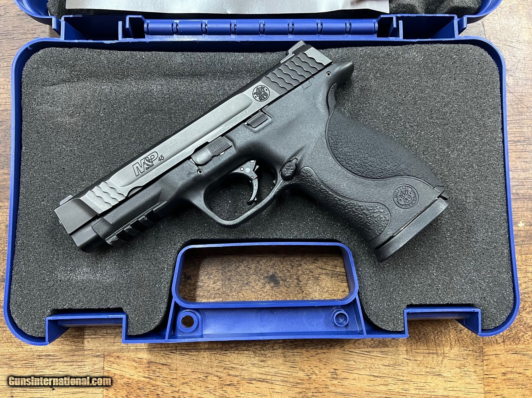 Description: Guns Listing ID: 594711 SMITH & WESSON PISTOL - M&P 45 - 4.5\" BARREL - OG BOX W/ ONE 10 RD MAG, SERIAL NUMBER DXF6799. OVERALL LENGTH: 8.25\" WEIGHT: 1.8 LBS. Manufacturer: SMITH & WESSON Model: M&P 45 Caliber Info: .45 ACP Condition: Used - Non-Certified Barrels: 4.5" BARREL Action: SEMI AUTOMATIC Finish: black Price: $399.99 Contact Seller |