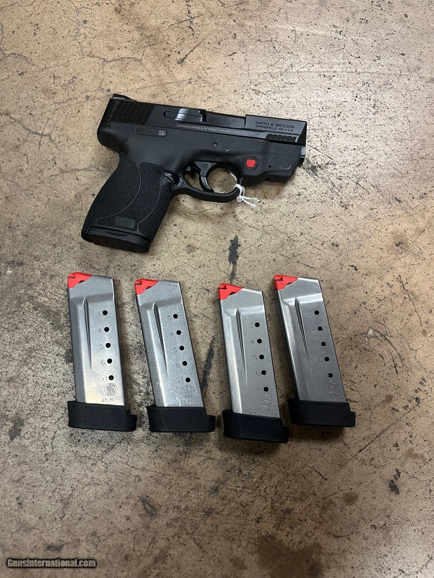 Description: Guns Listing ID: 536769 no box crimson trace laser 5 mags total manual safety SOLD Manufacturer: SMITH & WESSON Model: M&P 45 Shield M2.0 Crimson Trace Laser Caliber Info: .45 ACP Condition: Used - Non-Certified Barrels: 3 BARREL Action: SEMI AUTOMATIC Finish: black |