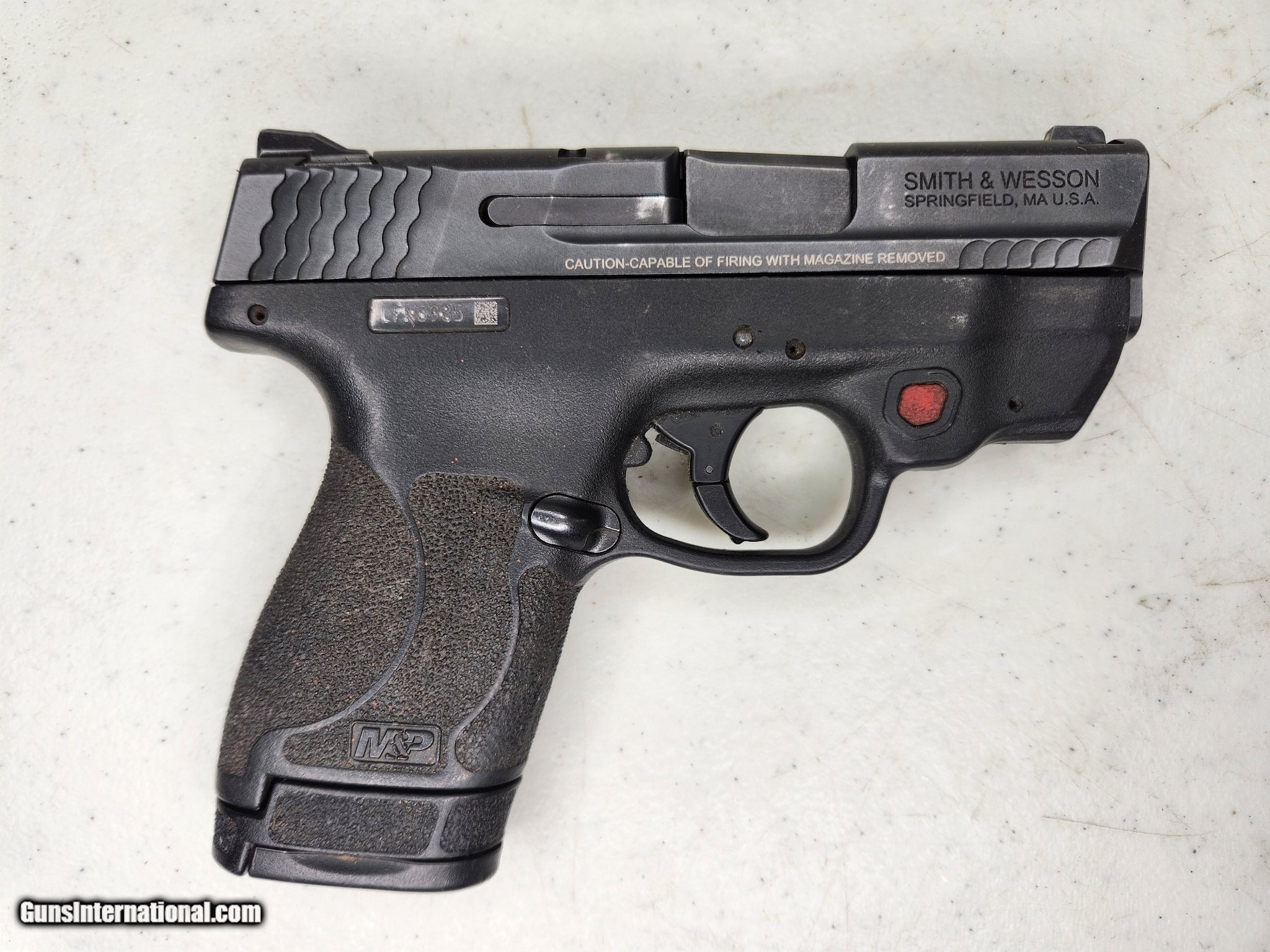 Description: Guns Listing ID: 694000 SMITH & WESSON M&P 9 - 9MM - 8 ROUNDS - 3 \" Gun includes one magazine. Gun in fair condition. Wear consists of dirt, discoloration spots, scratches to barrel, grip, sight, safety. Overall gun shows a tarnished or worn look. See photos for more details. FCS068550 KCD SOLD Manufacturer: SMITH & WESSON Model: M&P 9 Caliber Info: 9MM LUGER (9X19 PARA) Condition: Used - Non-Certified Barrels: 3 BARREL Finish: BLUE |
