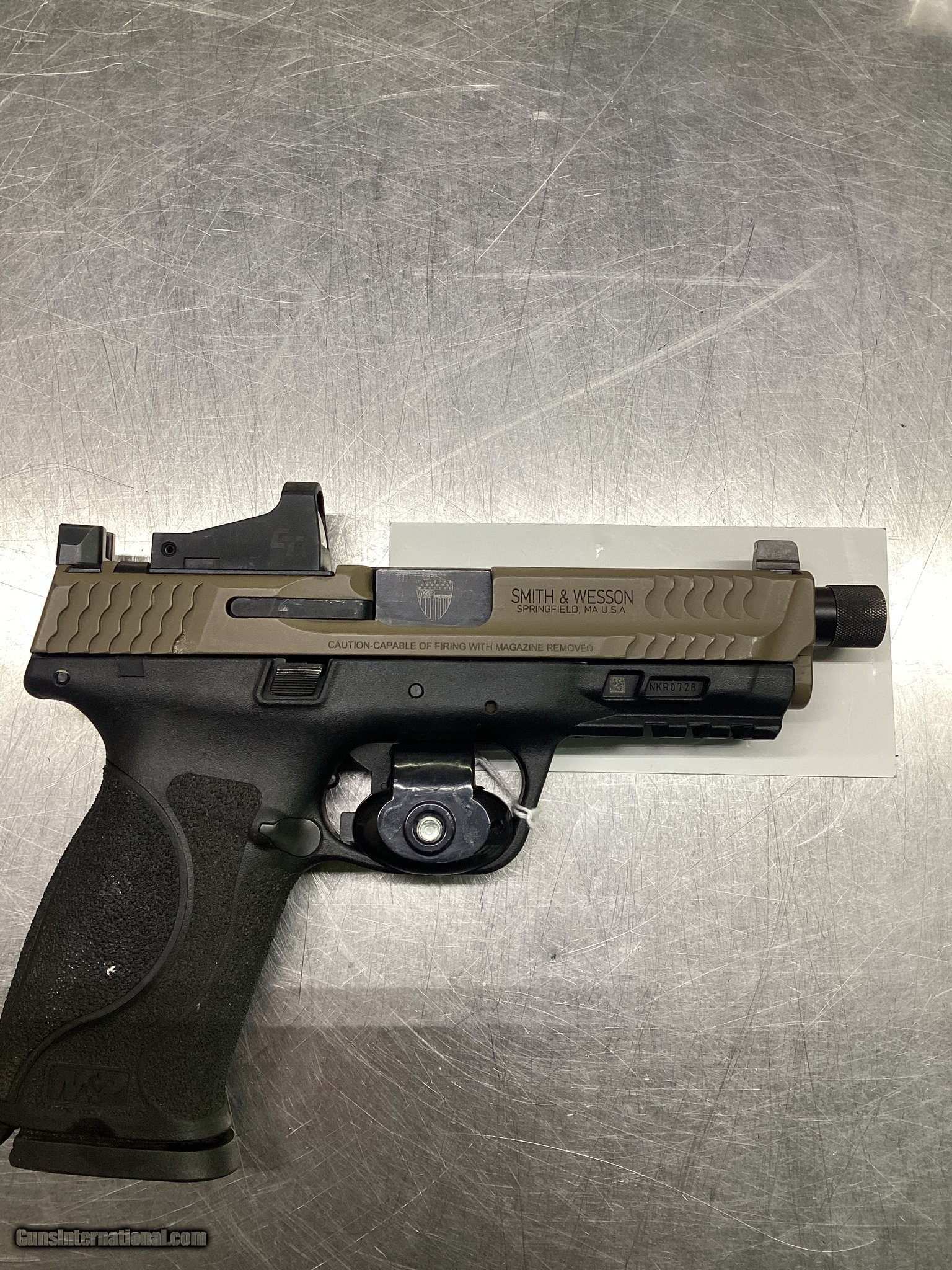 Description: Guns Listing ID: 477479 This exclusive Smith & Wesson M&P9 M2.0 Compact pistol is optics ready, and features a Crimson Trace Red Dot Reflex Sight. ighlights of the M&P M2.0 Compact pistol include an extended stainless-steel chassis and high grip to barrel bore axis ratio for reduced muzzle rise and faster aim recovery. The M&P M2.0 pistol further improves performance with a fine-tuned, crisper trigger, lighter pull. With original case and two mag knife or dagger and coin set SOLD Manufacturer: SMITH & WESSON Model: M&P 9 M2.0 Condition: Used - Non-Certified Barrels: 5 Gauge Info: 9MM LUGER (9x19 PARA) Finish: two tone |