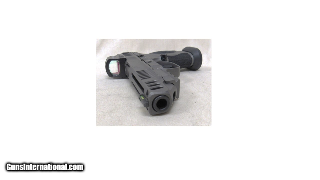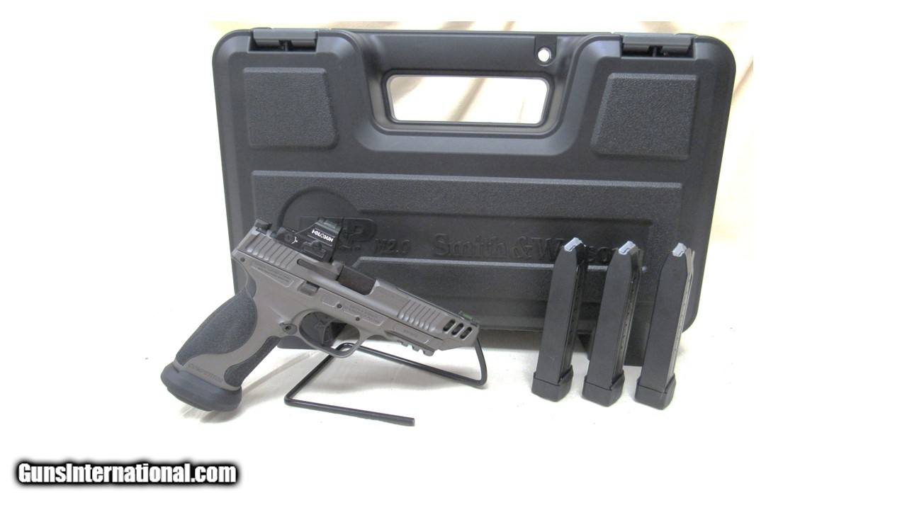 Description: Guns Listing ID: 1394356 The Smith & Wesson Performance Center M&P9 M2.0 Competitor is a top-tier striker-fired semi-automatic pistol designed for serious shooters. With a robust metal frame and a 5\" barrel, it boasts a sleek Tungsten Grey Cerakote finish that not only looks great but enhances durability. The speed cut slide and fiber optic front sight ensure quick target acquisition, while the serrated blacked-out rear sight provides precision aiming. This full-size pistol features a magwell for smooth reloads, an oversized magazine release for easy handling, and a Performance Center tuned trigger for an exceptional shooting experience. It comes with four 17-round magazines, a Holosun HS407C X2 red dot optic, and a large hard case with accessories, making it the perfect choice for competition or personal defense. SOLD Manufacturer: SMITH & WESSON Model: M&P 9 M2.0 COMPETITOR PERFORMANCE CENTER Caliber Info: 9MM LUGER (9X19 PARA) Condition: Used - Non-Certified Barrels: 5 BARREL Finish: GREY CERAKOTE |