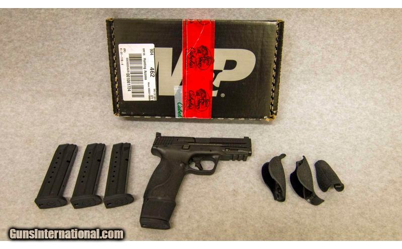 Description: Smith & Wesson M&P 9 M2.0 Optics Ready Full Size, chambered in 9 mm. Features include: full size polymer frame, 4 1/4 in. stainless steel barrel with Armornite finish, 17 shot mag., stainless steel slide with forward cocking serrations, M2.0 flat face trigger, white dot sights, polymer grip with four interchangeable palmswell grip inserts, w/o manual thumb safety, Picatinny rail, matte black finish, 44.7 oz. 9mm Luger SOLD Chambers: 9 mm Metal Condition: Excellent Bore Condition: Excellent Barrels: 4 1/4' Sights: 3 Dot Item Location: Fort Mill, SC |