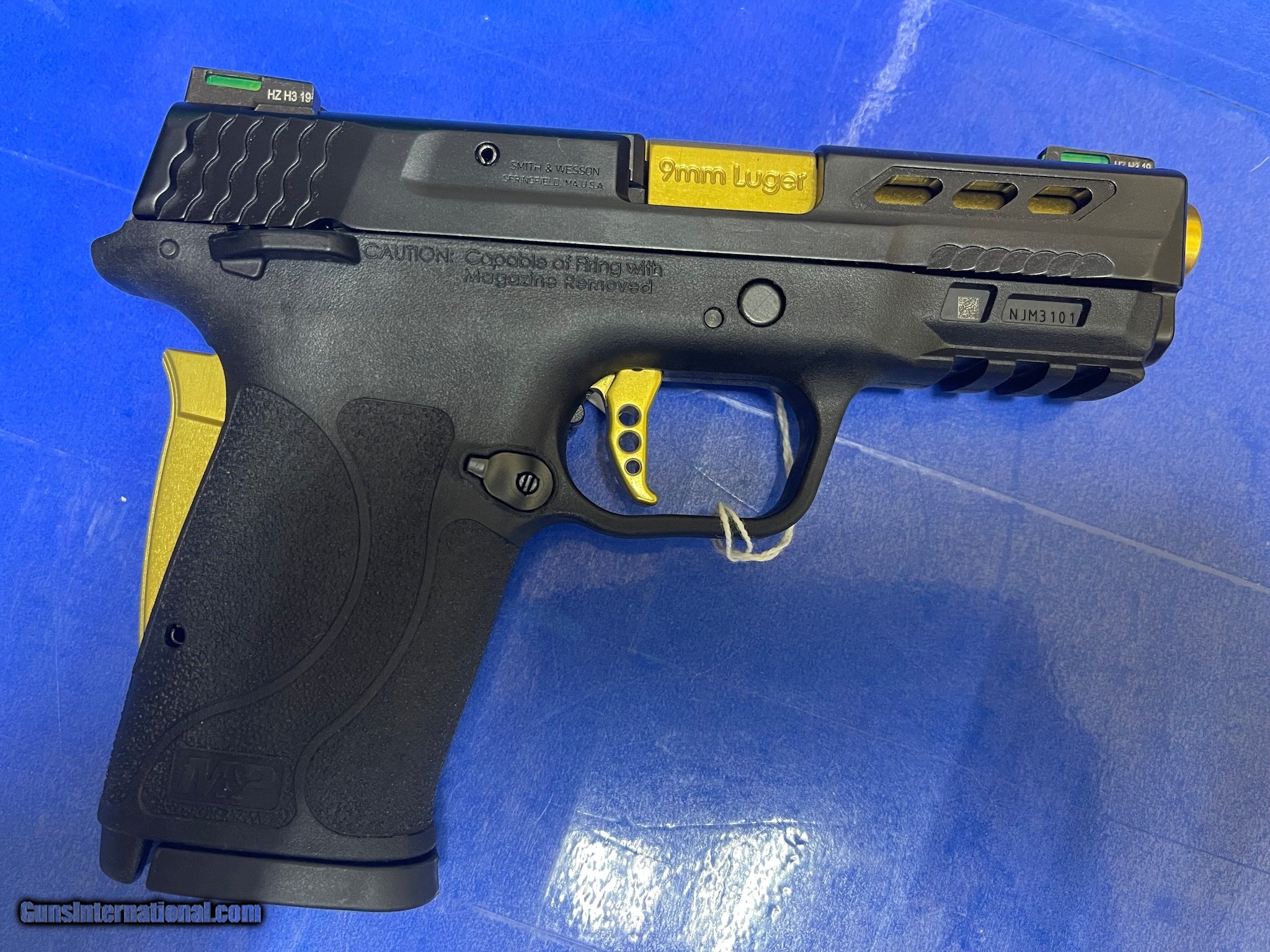 Description: Guns Listing ID: 610284 Brand: Smith & Wesson Model: M&P 9 Shield EZ Performance Caliber: 9mm Color: Black/Gold This firearm is in excellent condition! I see no scratches. This firearm will be shipped with one magazine. UPC# 022188883688 SOLD Manufacturer: SMITH & WESSON Model: M&P 9 Shield EZ Performance M2.0 GOLD Caliber Info: 9 MM Condition: Used - Non-Certified Barrels: 4 BARREL |