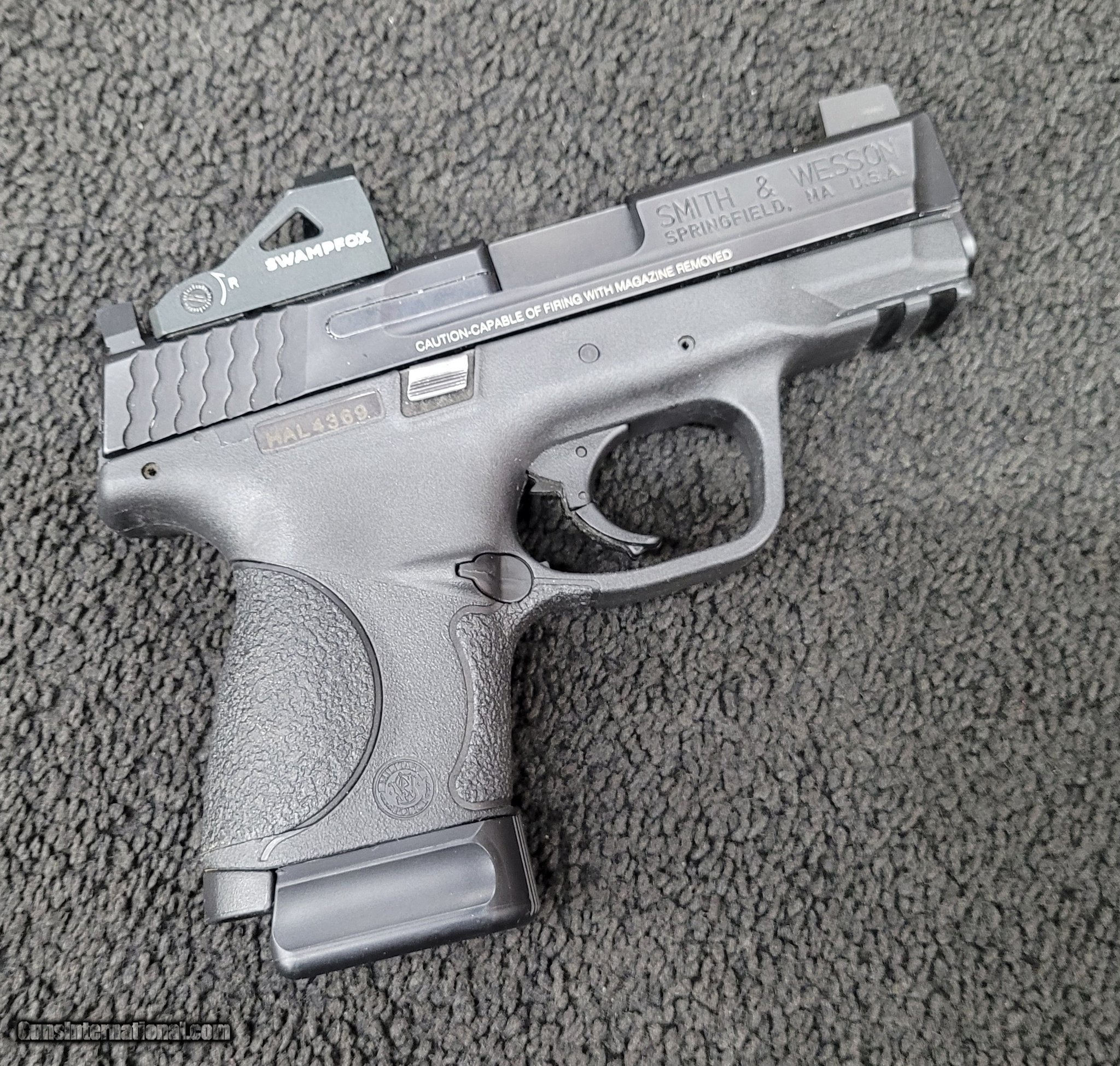 Description: Guns Listing ID: 468085 Smith and Wesson m&p 9c 9mm eleven round magazine with a plus two baseplate suppressor height sights swamp fox red do t cleaned and serviced SOLD Manufacturer: SMITH & WESSON Model: M&P 9C Condition: Used - Non-Certified Barrels: 3.5 Gauge Info: 9MM LUGER (9x19 PARA) Finish: black nitron |