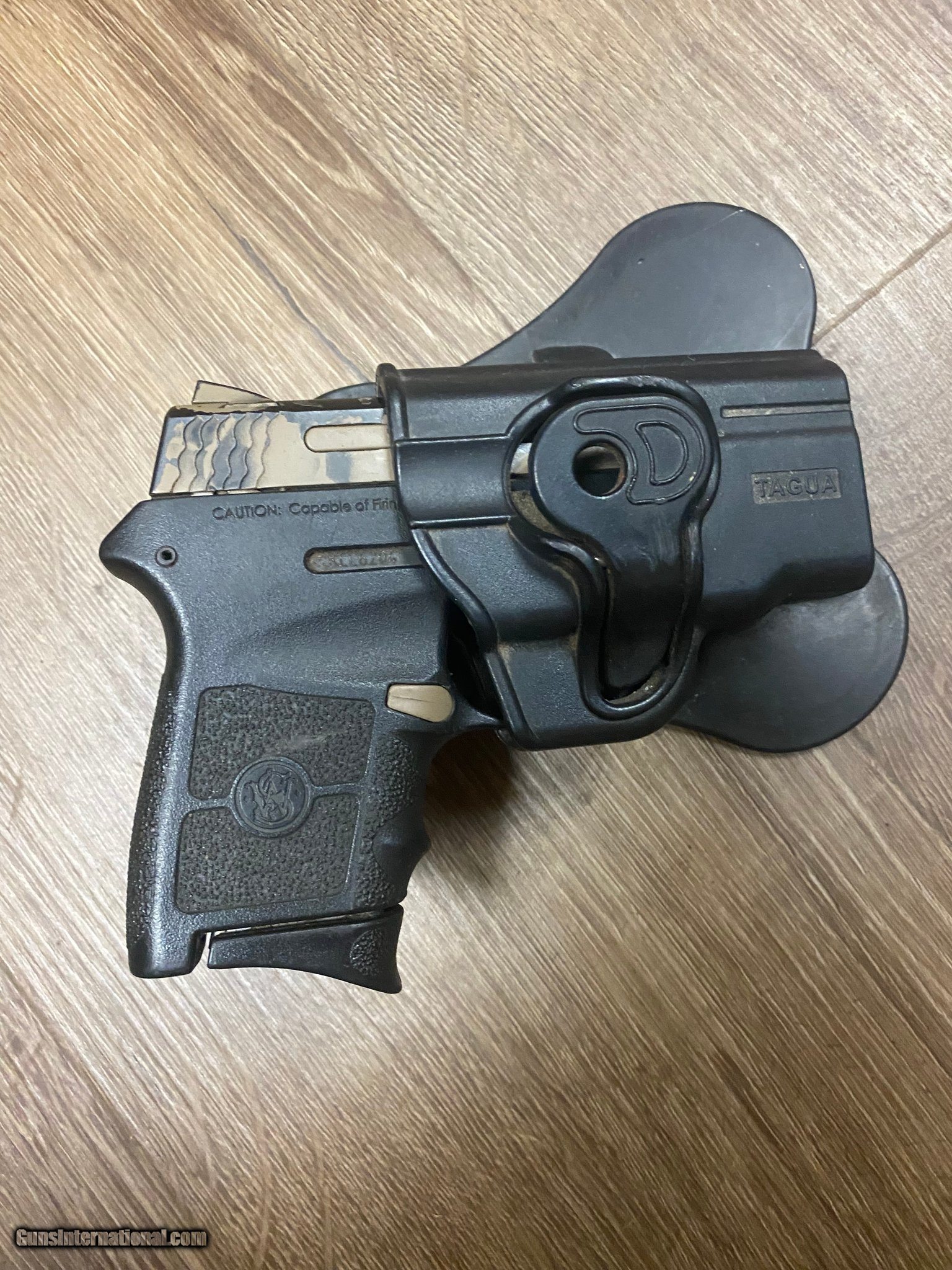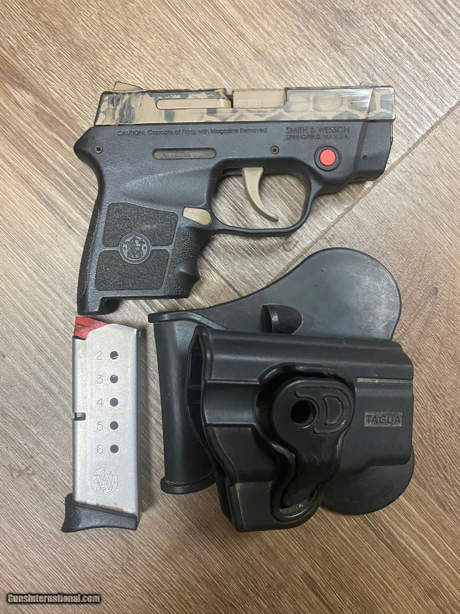 Description: Guns Listing ID: 1394743 Crimson trace laser External safety Includes one mag Holster SOLD Manufacturer: SMITH & WESSON Model: M&P BODYGAURD 380 Caliber Info: .380 ACP Condition: Used - Non-Certified Barrels: 2 BARREL Finish: BLACK AND TAN |