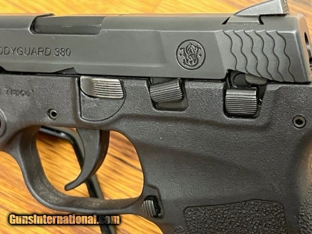 Description: Guns Listing ID: 564697 Designed for personal protection the Smith & Wesson MP Bodyguard 380 is a compact and lightweight double-action semi-automatic handgun chambered in 380 ACP with a 61 capacity. The frame is made of high-strength polymer and the barrel and slide constructed from stainless steel. With an overall length of 5.25 inches and weight of just over 12 ounces the MP Bodyguard is comfortable and easy to carry and makes a suitable pistol for concealed carry or a backup weapon for law enforcement. Details Action DAO - Caliber .380 Auto - Capacity 61 - Finish Matte Black - Material Polymer Steel - Grip Polymer - Sights Drift Adjustable w Laser - Barrel Length 2.75\" - Overall Length 5.25\" - Weight 12.3 oz. - Crimson Trace Integrated Laser - Stainless Steel Drift Adjustable Sights - Two Magazines Included (Finger Groove and Flat Butt Plate) - Ergonomic Grip - High-Strength Polymer Frame - External Takedown Lever Slide Stop - Manual Thumb Safety - Double Action Fire Control (2nd Strike Capability) - Stainless Steel Barrel Slide - Adjust Laser Without Any Disassembly of Firearm - Compact sleek and ergonomic the MP BODYGUARD 380 delivers personal protection in an easy-to-carry comfortable platform. Chambered for .380 ACP the lightweight pistol features a high-strength polymer frame with a black matte-coated stainless-steel slide and barrel. The new MP BODYGUARD 380 retains original design features including a 2.75\" barrel which contributes to an overall length of 5.5\" and an unloaded weight of only 12.3 ounces making it perfectly suited for concealed carry. SOLD Manufacturer: SMITH & WESSON Model: M&P BODYGUARD 380 CT Caliber Info: .380 ACP Condition: Used - Non-Certified Barrels: 2.75" barrel |