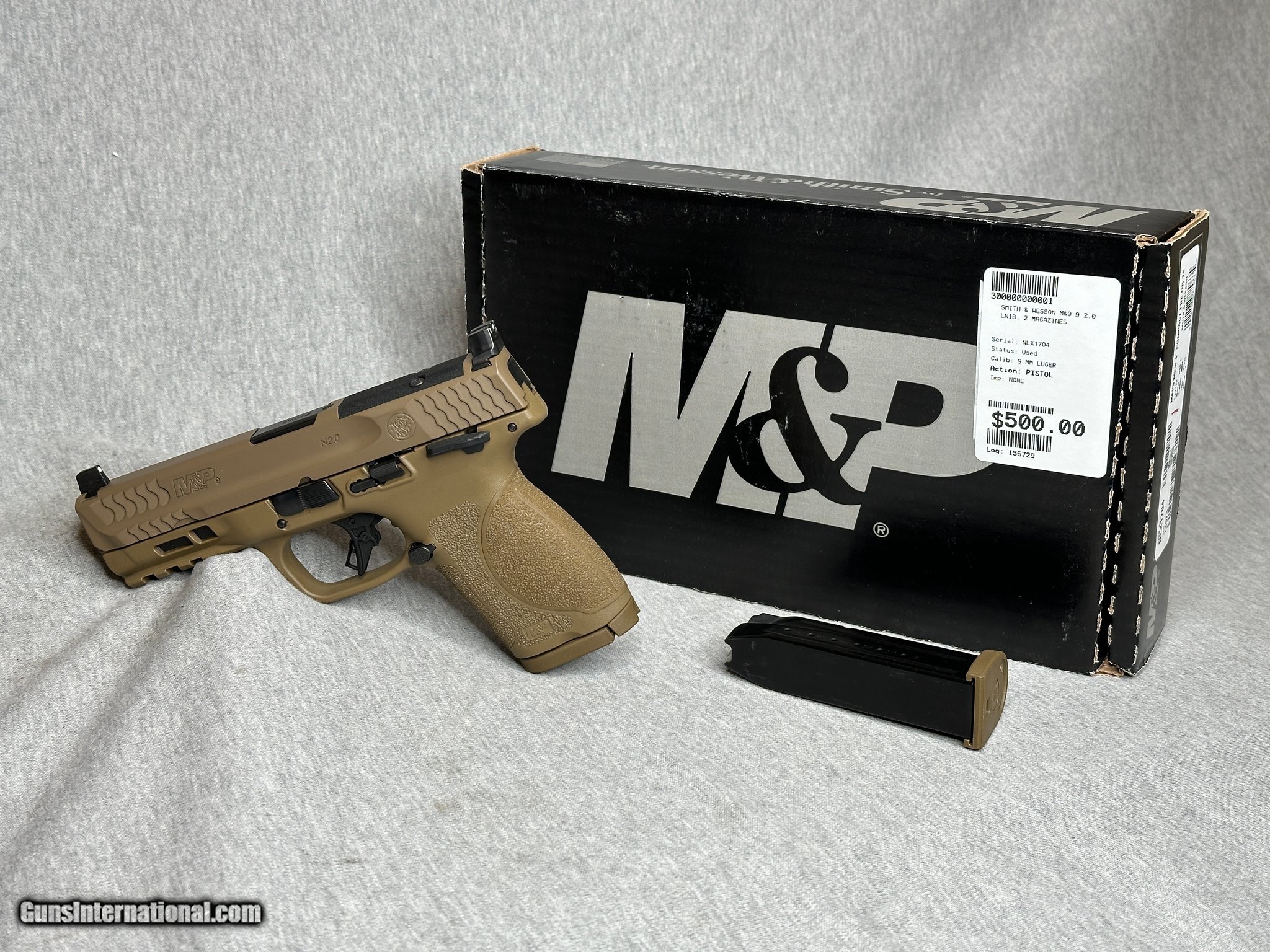 Description: Guns Listing ID: 1268310 SMITH & WESSON M&P M2.0 OPTIC READY - 9MM LUGER (9X19 PARA) Like new in box, comes with 2 magazines, extra backstraps, documentation, and gun lock. SOLD Manufacturer: SMITH & WESSON Model: M&P M2.0 Optic Ready Caliber Info: 9MM LUGER (9X19 PARA) Condition: Used - Non-Certified Barrels: 3.6 BARREL Finish: FLAT DARK EARTH |