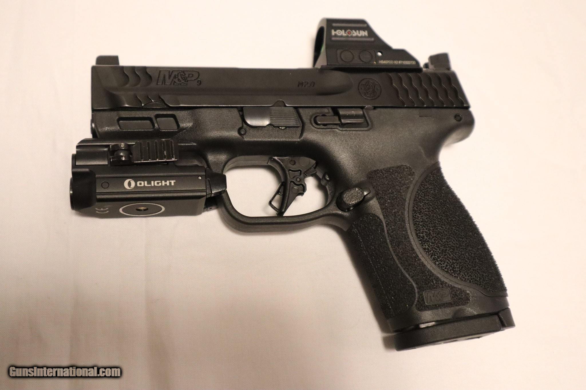 Description: Guns Listing ID: 589542 Smith & Wesson M&P9 M2.0 — 9mm With Holosun Reflex sight and Vlkkyrie PL-Mini Olight. Condition: Excellent in Original Box Price : $599 Description: For sale: Smith & Wesson M&P9 M2.0 chambered in 9×19mm. This is the popular M2.0 platform — crisp trigger, textured grip, and improved chassis over the original M&P. Great carry or range gun. Details / Specs Model: M&P9 M2.0 Caliber: 9mm Barrel length: 3.6\" Frame: Polymer, black Sights: Stock 3-dot Capacity:15 Round Magazine included Accessories included: -Factory box -1 Factory magazine -Spare backstraps -Lock -Holosun HS407CO Reflex Sight -Valkyrie PL-Mini Olight Manufacturer: SMITH & WESSON Model: M&P M2.0 Optic Ready Caliber Info: 9MM LUGER (9X19 PARA) Condition: Used - Non-Certified Barrels: 3.6" BARREL Action: STRIKER FIRED Finish: MATTE BLACK Weight: 1.5 LBS. Price: $599.99 Contact Seller |