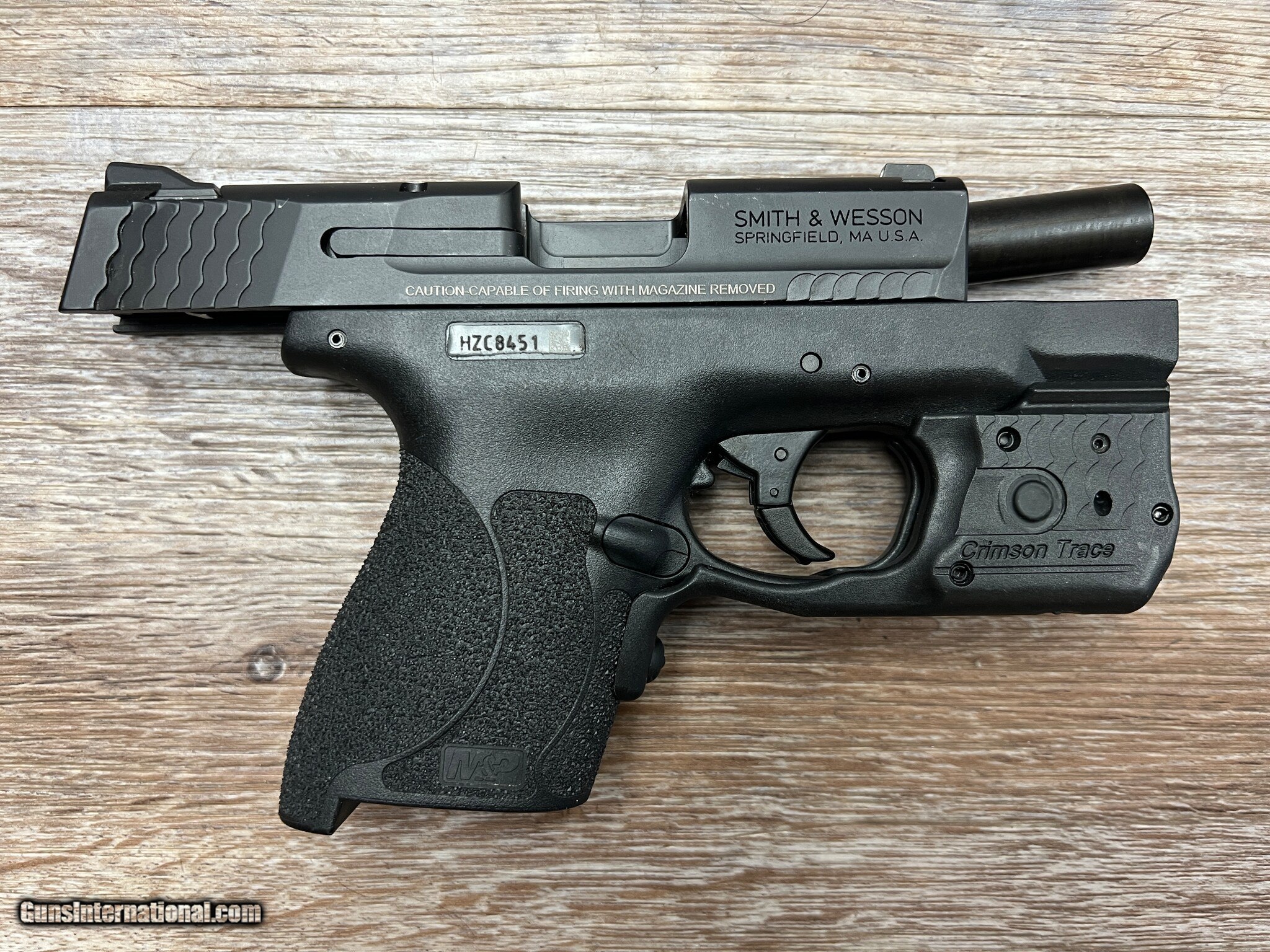Description: Guns Listing ID: 954858 This compact pistol has a 3in barrel with a Crimson Trace green laser/flashlight on the trigger guard and one 8rd magazine. SOLD Manufacturer: SMITH & WESSON Model: M&P Shield 9 Caliber Info: 9MM LUGER (9X19 PARA) Condition: Used - Non-Certified Barrels: 3 BARREL Finish: BLACK |