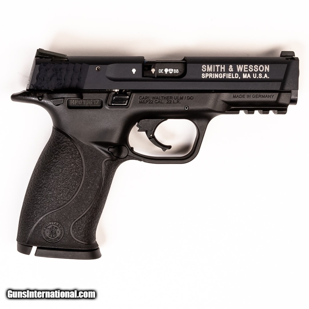 Description: Guns Listing ID: 522323 The Smith & Wesson M&P22 is a semi-automatic handgun chambered in 22 LR. It makes a great plinker, target practice pistol, and inexpensive training tool that features familiar controls found in full-size M&P handguns. This M&P22 includes the original case, manual, and one 10-round magazine. SOLD Manufacturer: SMITH & WESSON Model: M&P22 Caliber Info: .22 LR Condition: Used - Certified Barrels: 4 BARREL Finish: BLACK |