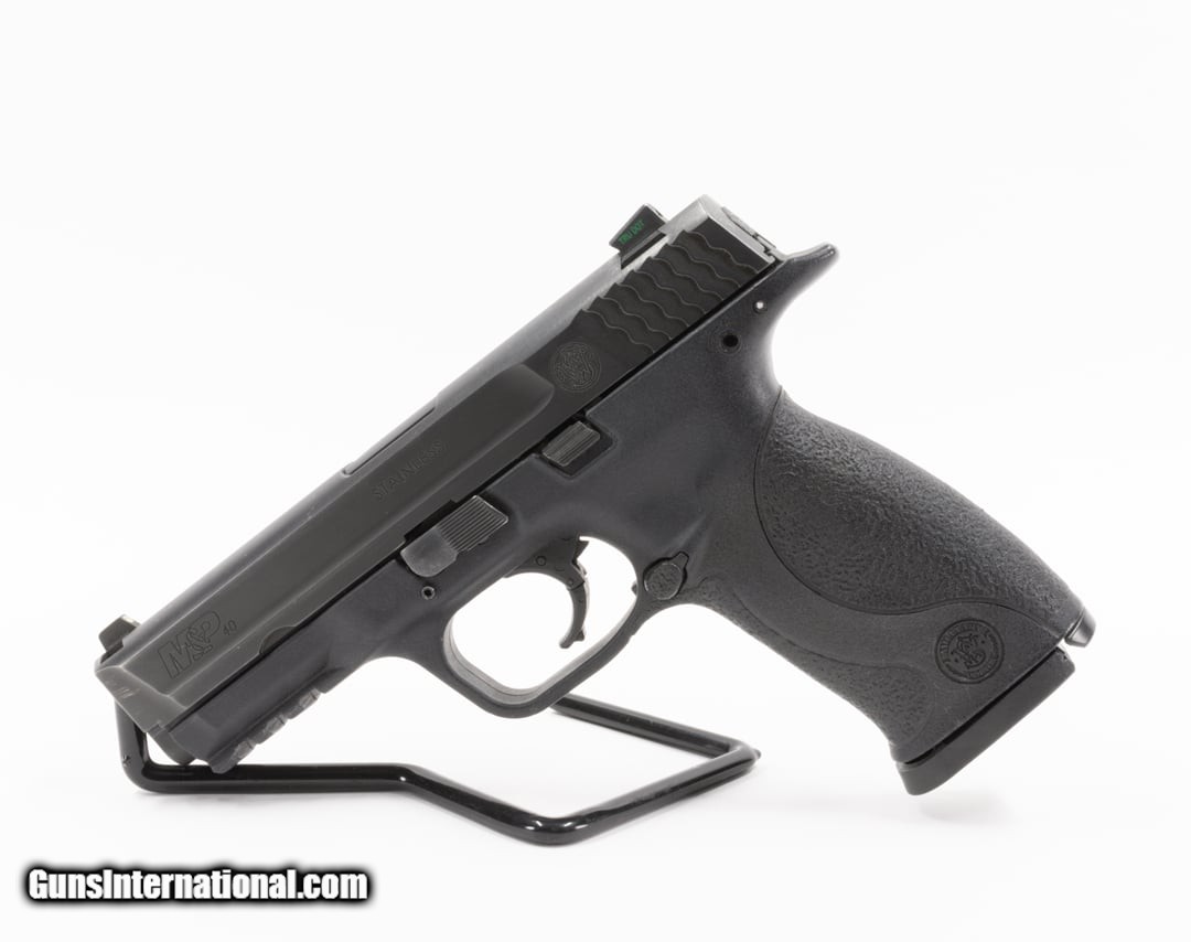 Description: Guns Listing ID: 574151 Police Trade-In Smith & Wesson S&W M&P40 .40 S&W in Grade 2 Condition The Smith & Wesson M&P (Military and Police) is a polymer-framed, short recoil-operated, locked breech semi-automatic pistol. It uses a Browning-type locking system. The M&P design has an improved trigger and enhanced ergonomics that allow for end-user customization. An industry-standard Picatinny rail and a higher grip has been afforded with an improved grip and beavertail. The improved trigger weight and feel and the unique takedown method (not requiring a dry-fire pull of the trigger) were meant to set the M&P apart from the popular Glock pistols. Manufacturer: Smith & Wesson (S&W) Model: M&P40 Condition: Grade 2 Caliber: .40 S&W Action: Semi-Auto Barrel Length: 4.25\" Capacity: 15+1 Features: Striker fired, 3 white dot sights. • This item is a Police Trade-In. The item you receive may vary from the item featured in photos. This may include the number of mags, boxes/cases, any accessories, bore condition, and cosmetic flaws such as scratches, dents, blemishes, etc. SOLD Manufacturer: SMITH & WESSON Model: M&P40 Caliber Info: .40 S&W Condition: Used - Non-Certified Barrels: 4.25" BARREL Action: SEMI AUTOMATIC Finish: black |
