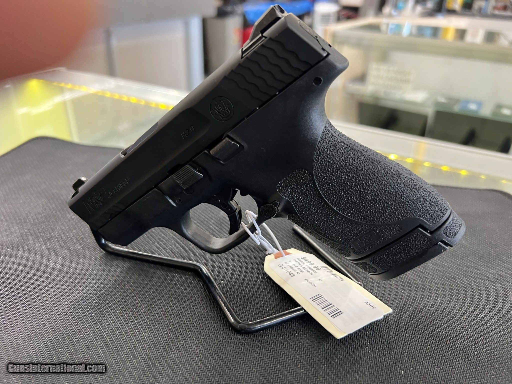 Description: Guns Listing ID: 749181 \" ALL FIREARMS ARE INSPECTED BY A CERTIFIED GUNS-SMITH & NRA INSTRUCTOR \ SOLD Manufacturer: SMITH & WESSON Model: M&P40 SHIELD Caliber Info: 9MM LUGER (9X19 PARA) Condition: Used - Non-Certified Barrels: 5 BARREL Finish: BLACK |