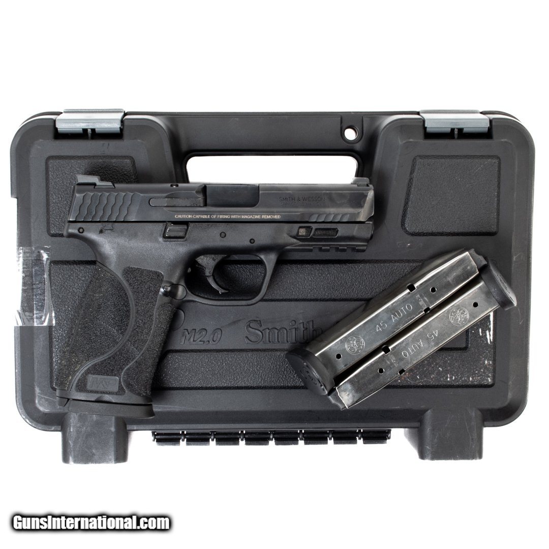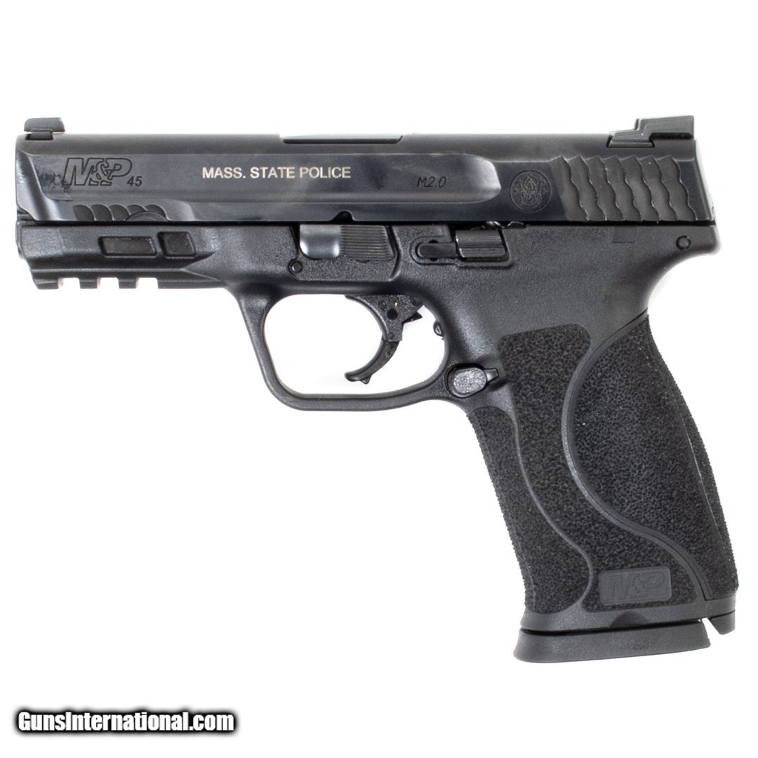 Description: Guns Listing ID: 525576 This Smith & Wesson M&P45 M2.0 is a Massachusetts State Police model with \"Mass. State Police\" on the left side of the slide and a Massachusetts State Police crest on top of the slide. It features night sights and includes the original case, two 10-round magazines, and backstraps. Get the best bang for your buck when you get a Certified Used Firearm . When you see the Certified Used stamp on any of our firearms, you can be confident that you‚‚re getting exactly what you want – a gun only in very good to excellent condition and held to the highest quality standard. All Certified Used Guns come with a ‚‚no questions asked‚‚ return policy . PLUS, ALL CERTIFIED USED GUNS SHIP FR SOLD Manufacturer: SMITH & WESSON Model: M&P45 MASS. STATE POLICE M2.0 Caliber Info: .45 ACP Condition: Used - Certified Barrels: 4.00 Action: SEMI AUTOMATIC Finish: black Weight: 1.6 |