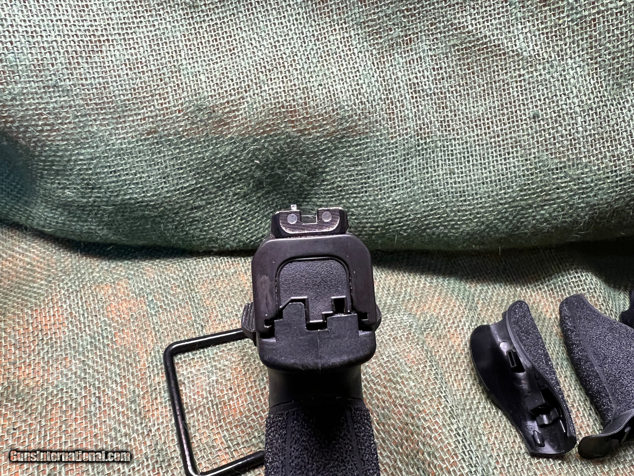 Description: Guns Listing ID: 679027 More Information Safety: Thumb Frame Finish: Black Front Sight: Dovetail White Dot Rear Sight: White 2-Dot Grips: 3 Interchangeable Sizes Features: Ambidextrous Slide ReleaseReversible Magazine CatchAggressive Texture Slide Finish: Matte Black Stainless Steel Finish: Black Magazine Count: 2.000 Firing System: Striker Frame Material: Polymer Rifled Barrel: Yes Like new includes everything that you would get if you bought new 2 magazines 3 backstraps SOLD Manufacturer: SMITH & WESSON Model: M&P45 (SAFETY) Caliber Info: .45 ACP Condition: Used - Non-Certified Barrels: 4.6 BARREL Finish: BLACK |