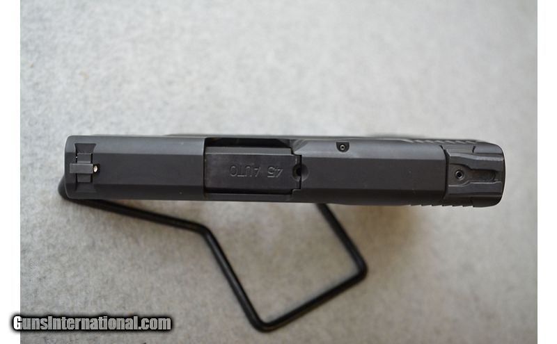 Description: Borderline excellent condition overall. There is a light strip of holster wear (see pictures), but the metal and frame otherwise look almost new. Comes with a total of three magazines; two with extensions and one flush fit. .45 ACP SOLD Chambers: Semiautomatic fed from detachable magazines. Metal Condition: Very good. Wood Condition: Frame is in excellent condition. Bore Condition: Excellent. Barrels: 3¼" Blued. Triggers: Matte black polymer with integrated safety. Stock Dimensions: N/A Fore End: N/A Butt Pad: Matte black polymer frame. Weight: 1lb 8oz Sights: Fixed white 3-dot sights. Chokes: N/A Item Location: Green Bay |