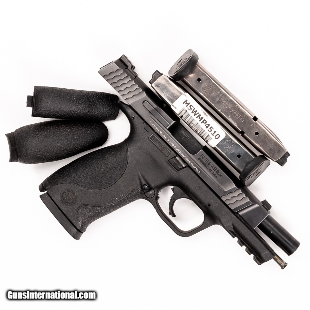 Description: Guns Listing ID: 335943 Meet the M&P45 from Smith & Wesson. Reinforced polymer chassis, superior ergonomics, ambidextrous controls, proven safety features. The new standard in reliability when your job is to serve and protect and your life is on the line. In the design of the M&P, we considered the needs of military and law enforcement from every conceivable angle. No other polymer pistol offers this combination of versatility, durability and safety. Chambered in .45 ACP the Smith & Wesson M&P45 is a big bore duty pistol that is well-equipped to take on a variety of tasks. Whether you need a new self-defense sidearm for your profession or a home-defense handgun to protect your family, the M&P series is well-respected and known for getting the job done. This pistol comes with two 10-round magazines, the manual, and the original case. SOLD Manufacturer: SMITH & WESSON Model: M&P45 Caliber Info: .45 ACP Condition: Used - Certified Barrels: 4.5 BARREL Finish: BLACK |