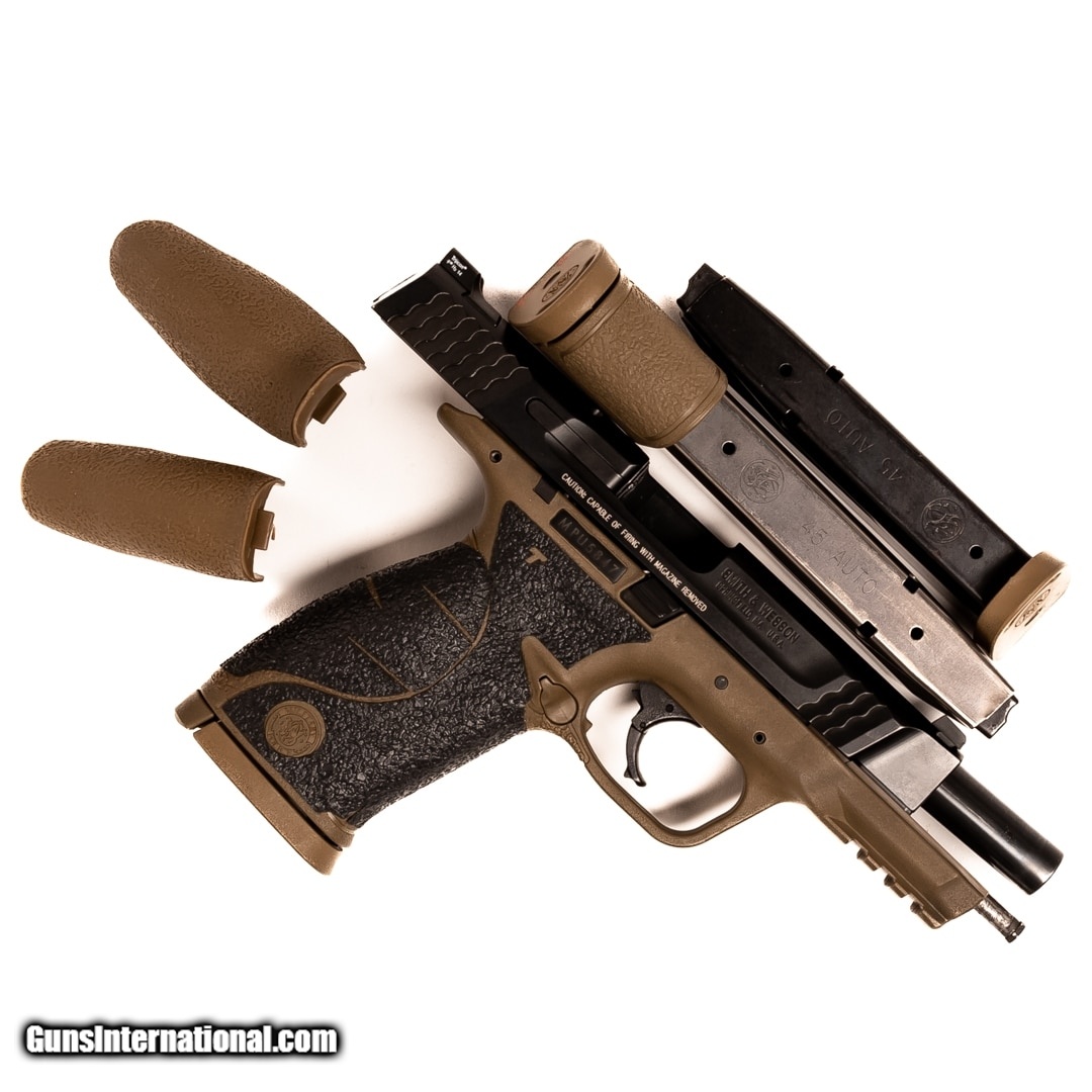 Description: Guns Listing ID: 690523 Ideal for concealed carry and home defense, this Smith & Wesson M&P45 Shield packs the power and features of the full-sized M&P45 into an ultra-compact design. It is built with a stainless steel chassis, barrel, and slide, as well as a polymer frame to resist corrosion. The aggressively textured grip aids in a secure hold. This handgun features one 14-round magazine, two 10-round magazines, grip wrap, backstraps, and the original case with the manual. Get the best bang for your buck when you get a Certified Used Firearm . When you see the Certified Used stamp on any of our firearms, you can be confident that you’re getting exactly what you want – a gun only in very good to excellent condition and held to the highest quality standard. All Certified Used Guns come with a ‘no questions asked’ return policy . PLUS, ALL CERTIFIED USED GUNS SHIP FREE! SOLD Manufacturer: SMITH & WESSON Model: M&P45 Caliber Info: .45 ACP Condition: Used - Certified Barrels: 1.8 barrel Finish: FDE/BLACK |