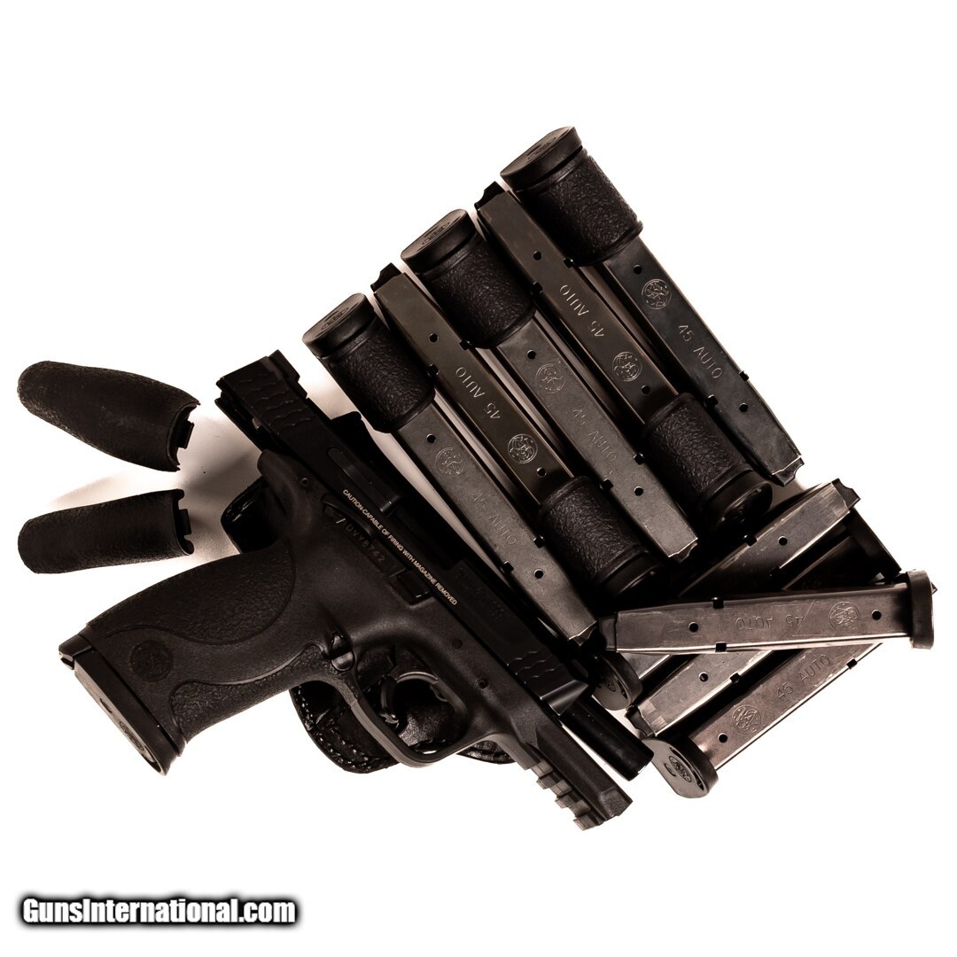 Description: Guns Listing ID: 703700 An award-winning handgun and one of the most popular pistols on the market today, the Smith & Wesson M&P 45 is chambered in 45 ACP and known for reliability. An excellent choice for self-defense, this pistol is sure to serve you well. This M&P45 has a safety and includes the original case, manual, five 10-round magazines, five 14-round magazines, extra palm swells, and a right-handed leather holster. Get the best bang for your buck when you get a Certified Used Firearm . When you see the Certified Used stamp on any of our firearms, you can be confident that you’re getting exactly what you want – a gun only in very good to excellent condition and held to the highest quality standard. All Certified Used Guns come with a ‘no questions asked’ return policy . PLUS, ALL CERTIFIED USED GUNS SHIP FREE! SOLD Manufacturer: SMITH & WESSON Model: M&P45 Caliber Info: .45 ACP Condition: Used - Certified Barrels: 4 BARREL Finish: BLACK |