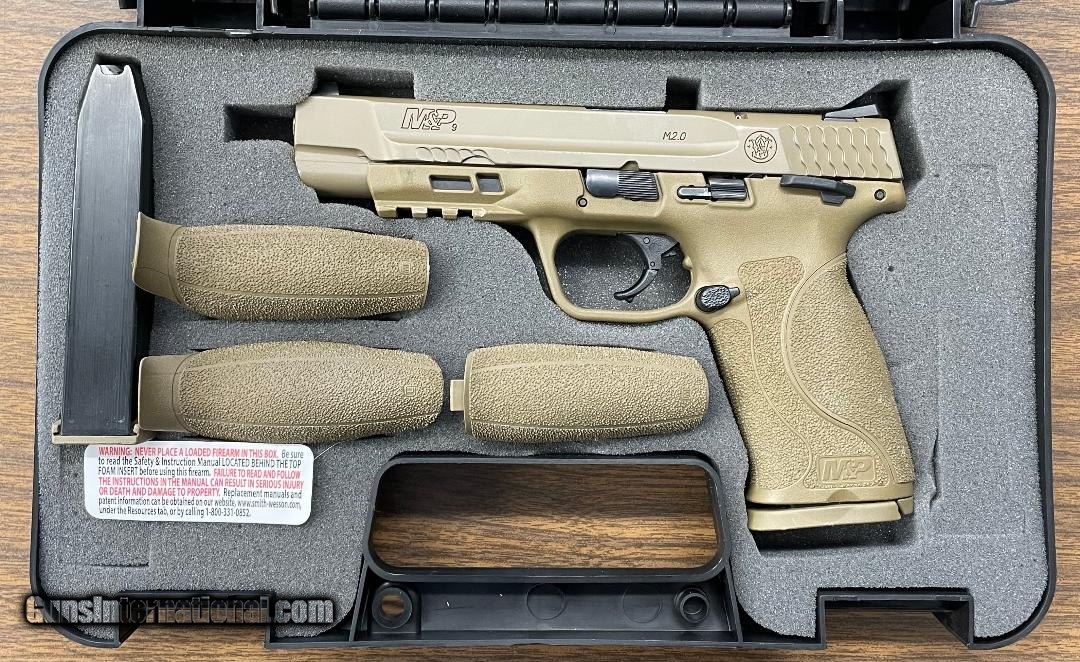 Description: Guns Listing ID: 899808 Smith & Wesson, M&P M2.0, Striker Fired, Semi-automatic, Polymer Frame Pistol, Full Size, 9MM, 5\" Barrel, Armornite Finish, Flat Dark Earth, 3 Dot upgraded night Sights, Manual Thumb Safety, 17 Rounds, 2 Magazines, RH OWB Kydex Holster Factory Box Flat Dark Earth Finish Low Barrel bore axis 18-degree Grip Angle Four interchangeable palm swell Grip inserts Aggressive Grip Texture Thumb Safety SOLD Manufacturer: SMITH & WESSON Model: M&P9 2.0 FDE Caliber Info: 9MM LUGER (9X19 PARA) Condition: Used - Non-Certified Barrels: 5 BARREL Finish: TAN |