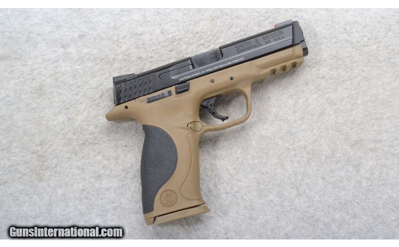 Description: This Smith & Wesson Model M&P9 is a right hand semi-auto pistol in 9mm Cal. It has a 4 inch barrel with a rear serrated matte black slide. A red high visibility front sight and a notch rear sight with green high visibility. The grip is a textured FDE and black polymer. It has a lower accessory rail. 9mm Parabellum SOLD Chambers: 17 round magazine. Metal Condition: Excellent. Bore Condition: Excellent. Barrels: 4 inch barrel with a rear serrated slide. Weight: 28 oz. Sights: Red high visibility front. Notch rear with green high visibility. Item Location: Richfield, WI |