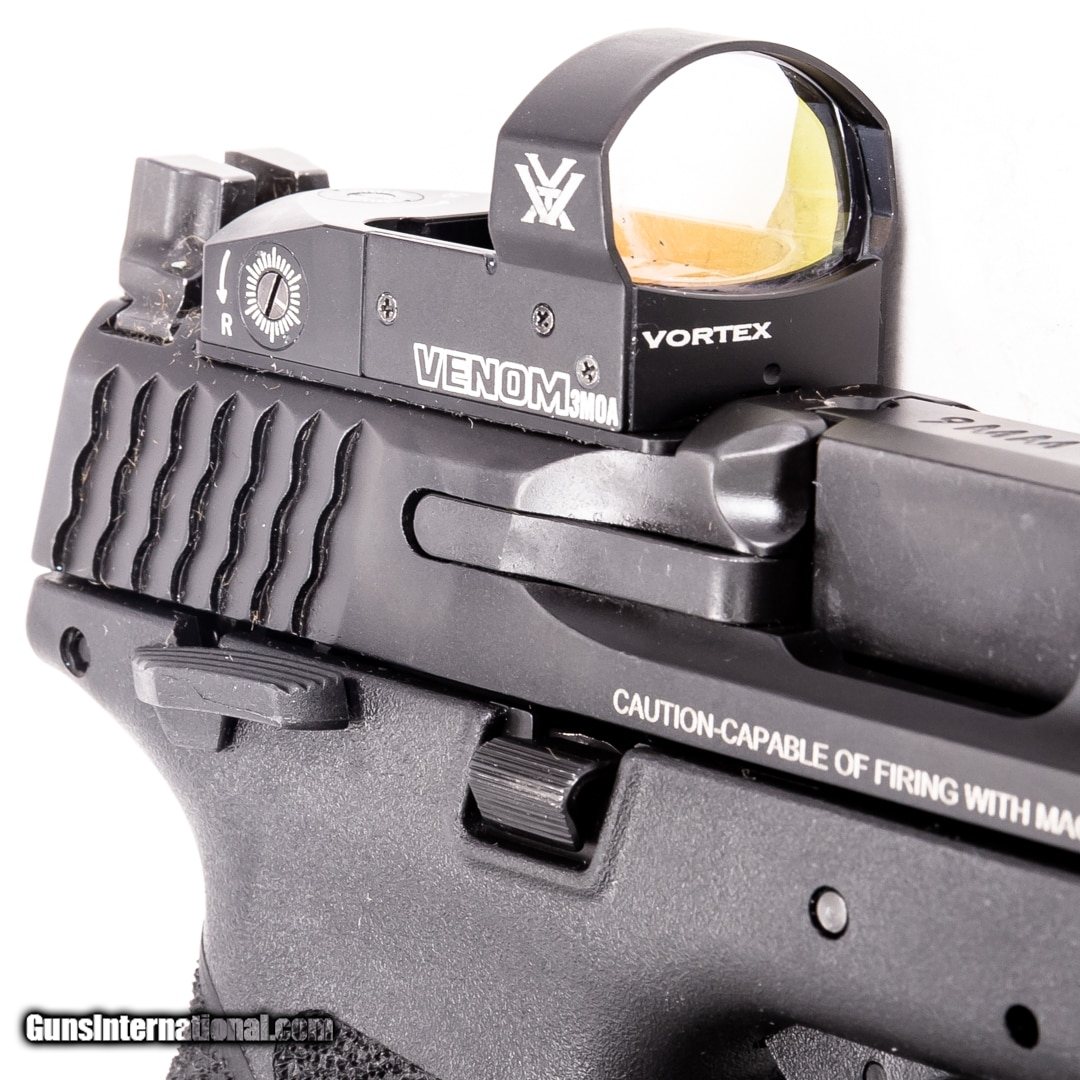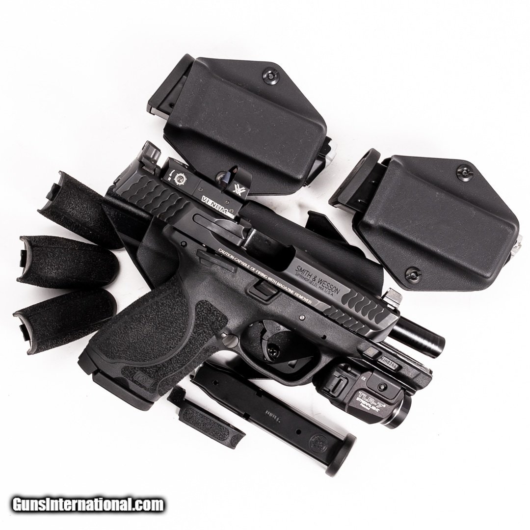 Description: Guns Listing ID: 319069 The Smith & Wesson M&P9 Compact is one of the most widely adopted self-defense pistols in the world. It combines reliability, accuracy, and capability into an inexpensive package that‚‚s not a burden to carry concealed. This Optic Ready model has a Vortex Venom 3 MOA red dot and a Streamlight TLR-7. It is in very good condition and comes with four 15-round magazines, two factory magazine extensions, four factory backstraps, and a holster with two magazine carriers SOLD Manufacturer: SMITH & WESSON Model: M&P9 COMPACT OPTIC READY Caliber Info: 9MM LUGER (9X19 PARA) Condition: Used - Certified Barrels: 4 BARREL Finish: BLACK |