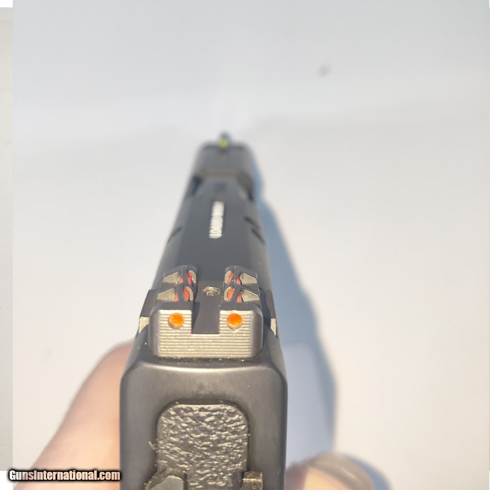 Description: Guns Listing ID: 410380 S&W M&P9 Shield w/Fiber Optic Sights, 2 Mags, Box, Manual, Gun Lock, Mint Product Features The reality of protection is that you never know when you’ll need it. We took the power and features of our full sized M&P pistols and put them into a slim, lightweight pistol the size of your hand. The M&P SHIELD® is an easy to conceal pistol that offers professional grade features with simple operation and reliable performance day or night. One million Shield owners can’t be wrong. • Incorporates the design features of the M&P line of firearms • Extremely thin and lightweight - can be comfortably carried all day • M&P’s patented take-down lever and sear deactivation systems allow for disassembly without pulling the trigger • 2 magazines included - one standard, flush fit and one extended finger groove • 18 degree grip angle for natural point of aim • Striker-fired for short consistent trigger pull, every time • Backed by Smith & Wesson’s Lifetime Service Policy • Armornite® Durable Corrosion Resistant Finish • Tactile, Loaded Chamber Indicator • Magazine Safety ALL BACKED BY OUR SMITH & WESSON LIFETIME SERVICE POLICY. Availability subject to applicable federal, state and local laws, regulations, and ordinances. Specs SKU 11905 Model M&P®9 SHIELD™ HI VIZ® Sights Caliber 9mm Luger Capacity 7+1, 8+1 Safety Magazine Safety Length 6.1 Front Sight HI VIZ® Fiber Optic Green Rear Sight HI VIZ® Fiber Optic Red Action Striker Fire Grip Polymer Barrel Material Stainless Steel - Armornite® Finish Slide Material Stainless Steel - Armornite® Finish Frame Material Polymer Barrel Length 3.1” (7.9 cm) Weight 20.6 oz. State Compliance CA,CO,MD SOLD Manufacturer: SMITH & WESSON Model: M&P9 HiViz w/2 Mags, Box, Manual Caliber Info: 9MM Condition: Used - Non-Certified Barrels: 3.1 BARREL Finish: 1 |