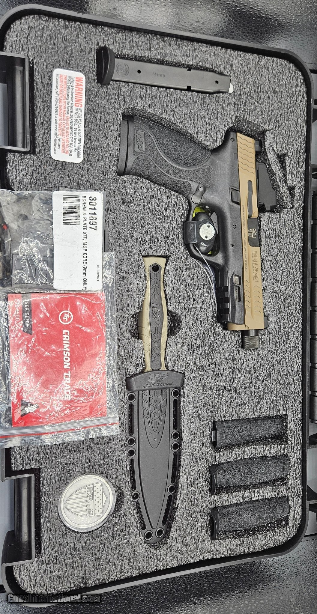 Description: Guns Listing ID: 577453 You are looking at a Smith & Wesson 9mm M&P9 M2.0 Spec Series in EXCELLENT condition with very minimal cosmetic damage. It comes with all you see in photo one including 2 17-round magazines, M&P knife, and original hard carrying case. WIDTH 1.3 in LENGTH 8.5 in HEIGHT 5.5 in WEIGHT 30 oz CALIBER 9MM SIZE FULL CAPACITY 17 ACTION STRIKER FIRED BARREL LENGTH 4.8 GRIP ALUMINUM SIGHTS NIGHT SIGHTS OPTIC READY YES 1314668-TMM-LM Manufacturer: SMITH & WESSON Model: M&P9 M2.0 5" PRO SERIES Caliber Info: 9MM LUGER (9x19 PARA) Condition: Used - Non-Certified Barrels: 4.8" BARREL Action: SEMI AUTOMATIC Finish: tan and black Price: $699.99 Contact Seller |