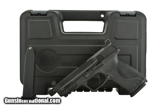Description: Smith & Wesson M&P9 M2.0 9mm caliber pistol. Full sized model with raised sights and threaded barrel with box and magazine. Excellent condition.