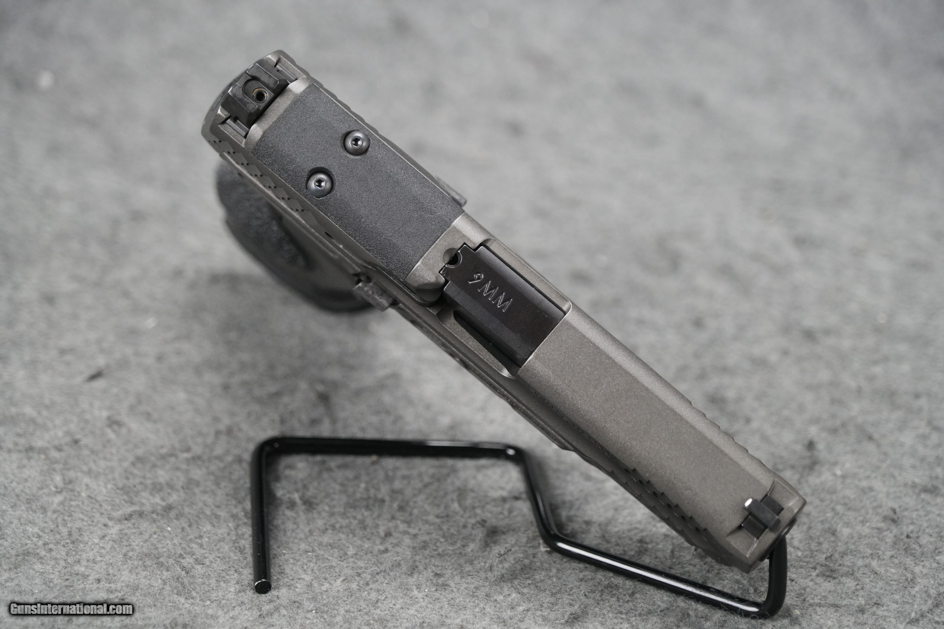 Description: The performance that began with our polymer construction is now forging forward. The lightweight and rigid metal frame of the Smith & Wesson M&P9 M2.0 Metal provides an extraordinary foundation for higher performance. Built on the M&P platform, it is compatible with all M2.0 magazines, slides, and palmswells. Optimal 18-degree grip angle for natural point of aim Four interchangeable palmswell grip inserts for optimal hand fit and trigger reach - S, M, ML, L Textured polymer front strap Wide slide stop Reversible magazine release Slide cut for optics M2.0 flat face trigger for consistent finger placement that allows for more accurate and repeatable shooting Picatinny-style rail Forward slide serrations Low barrel bore axis makes the M&P pistol comfortable to shoot, reducing muzzle rise and allowing for faster aim recovery Enhanced sear for lighter, crisper trigger let-off Accurate 1 in 10 ? twist barrel M&P’s patented take-down lever and sear deactivation systems allow for disassembly without pulling the trigger Accepts any 17 round M2.0™ magazine Comes with two 17-round magazines WIDTH 1.3 in LENGTH 7.4 in HEIGHT 5.5 in WEIGHT 30 oz CALIBER 9MM SIZE FULL CAPACITY 17 ACTION STRIKER FIRED BARREL LENGTH 4.25 GRIP POLYMER SIGHTS WHITE DOT OPTIC READY YES SAFETY NONE COLOR/FINISH GRAY STATE COMPLIANCE N/A THREADED BARREL NO BARREL MATERIAL STAINLESS STEEL FRAME ALUMINUM SOLD Handgun Caliber: 9x19mm Parabellum (9mm Luger, 9x19mm NATO) Manufacturer: Smith & Wesson Model: M&P9 M2.0 Metal Barrel Length: 4.25" Barrel Condition: BRAND NEW |