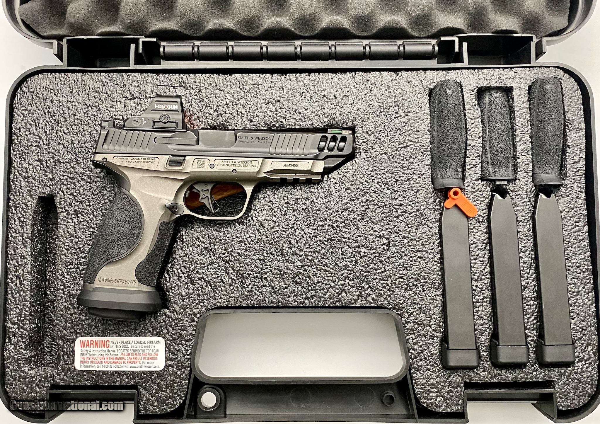 Description: Guns Listing ID: 1165599 Pre-Owned Smith & Wesson M&P9 Metal Competitor w/ Holosun 509c. It Comes With: - Original Case - Four Magazines SOLD Manufacturer: SMITH & WESSON Model: M&P9 M2.0 METAL COMPETITOR Caliber Info: 9MM LUGER (9X19 PARA) Condition: Used - Non-Certified Barrels: 5 BARREL Finish: TWO-TONE |