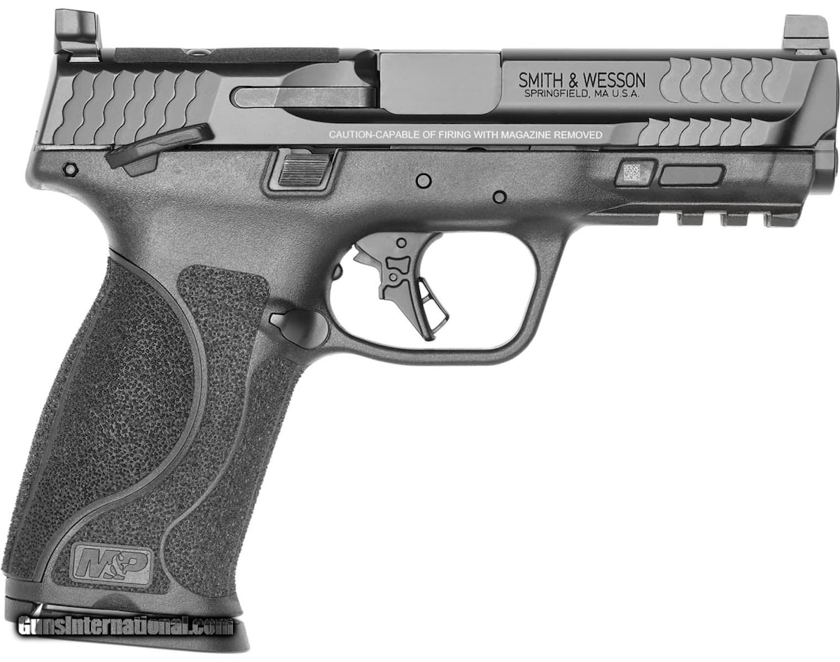 Description: Guns Listing ID: 384584 These models are chambered in 9mm with a 4 barrel, feature a slide cut for optics, co-witness white-dot front and rear sights, and enlarged forward serrations. This pistol will ship with two 15-round magazines and comes standard with seven mounting plates designed to fit popular slide-mounted optics. Highlights of the M&P M2.0 pistol include an extended stainless-steel chassis and a low barrel bore axis for reduced muzzle rise and faster aim recovery. The M&P M2.0 pistol further improves performance with a fine-tuned, flat-face trigger, lighter pull and a tactile and audible reset. The pistol includes an aggressively-textured grip and four interchangeable palmswell inserts for optimal hand-fit and trigger reach. SOLD Manufacturer: SMITH & WESSON Model: M&P9 M2.0 OR THUMB SAFETY Caliber Info: 9MM LUGER (9X19 PARA) Condition: new Barrels: 4.25 BARREL Finish: BLACK |