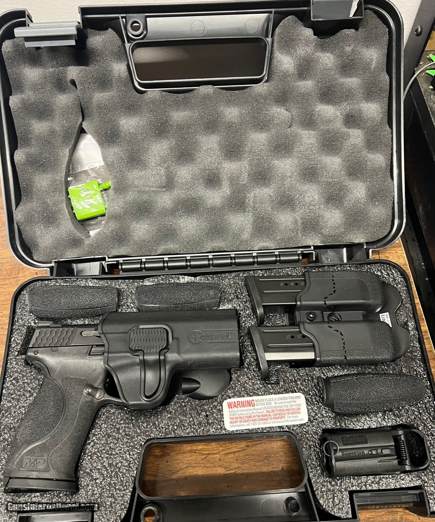 Description: Guns Listing ID: 899318 We have a really nice Smith & Wesson M&P9 M2.0 chambered in 9mm with a 4.25\" barrel. This will ship with the full \"Range Kit\" which includes: 3 magazines, all 17 round capacity, holster, dual magazine holster, speed loader, and 3 palm grips. Please see pictures for condition. SOLD Manufacturer: SMITH & WESSON Model: M&P9 M2.0 range kit Caliber Info: 9MM LUGER (9X19 PARA) Condition: Used - Non-Certified Barrels: 4.25 BARREL Finish: BLACK |