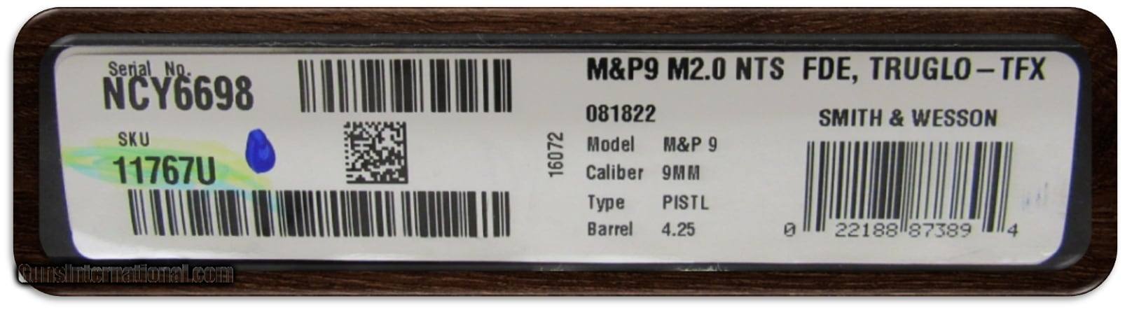 Description: Guns Listing ID: 863448 SMITH & WESSON M&P9 M2.0 TRUGLO - 9MM - 17-ROUNDS - 4.25\" BARREL STRIKER-FIRED SEMI-AUTO PISTOL INCLUDES S&W HARDCASE W/ OWNER‚‚S MANUAL + 1 MAGAZINE & INTERCHANGEABLE BACKSTRAPS PREINSTALLED TRUGLO TFX SIGHTS The M&P M2.0 9mm is the second generation of Smith and Wesson‚‚s M&P polymer handgun. It features an improved trigger, enhanced grip texture and interchangeable palmswell grip inserts to accommodate a variety of users. Other features include a 4.25\" barrel, optics ready slide, M2.0 flat-face trigger, Flat Dark Earth finish, and two 17-round magazine SOLD Manufacturer: SMITH & WESSON Model: M&P9 M2.0 TRUGLO Caliber Info: 9MM LUGER (9X19 PARA) Condition: Used - Non-Certified Barrels: 4.25 BARREL Finish: FDE |