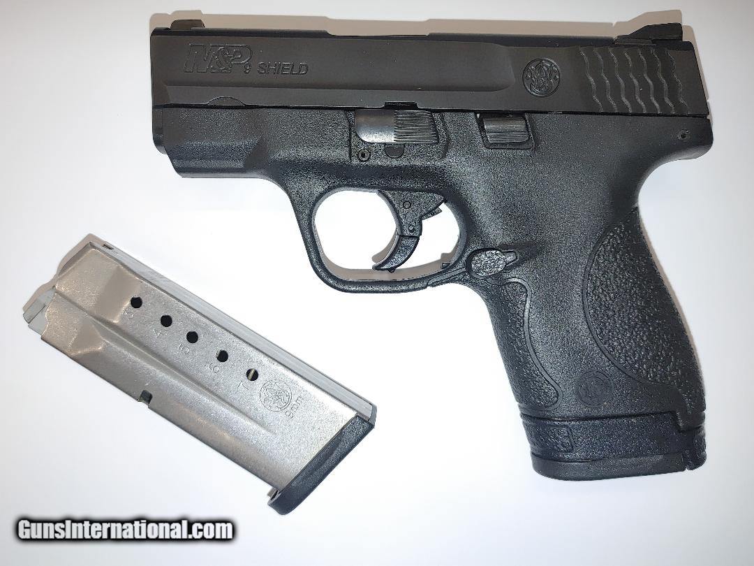 Description: Guns Listing ID: 1214483 Smith & Wesson, Shield 1ST GEN, Striker Fired, Semi-automatic, Polymer Frame Pistol, Micro-Compact, 9MM, 3.1\" Barrel, Armornite Finish, Black, Night Sights, No Thumb Safety, 2 Magazines, (1) 8-Round and (1) 7-Round LOW ROUND COUNT FACTORY BOX Armornite Finish Aggressive Grip texture for Enhanced Control Optimal 18-degree Grip Angle for Natural Point of Aim No manual Safety Product Description The reality of protection is that you never know when you‚‚ll need it. We took the power and features of our full sized M&P pistols and put them into a slim, lightweight pistol the size of your hand. The M&P Shield is an easy to conceal pistol that offers professional grade features with simple operation and reliable performance day or night. One million Shield owners can‚‚t be wron SOLD Manufacturer: SMITH & WESSON Model: M&P9 SHIELD Caliber Info: 9MM LUGER (9X19 PARA) Condition: Used - Non-Certified Barrels: 3.1 BARREL |
