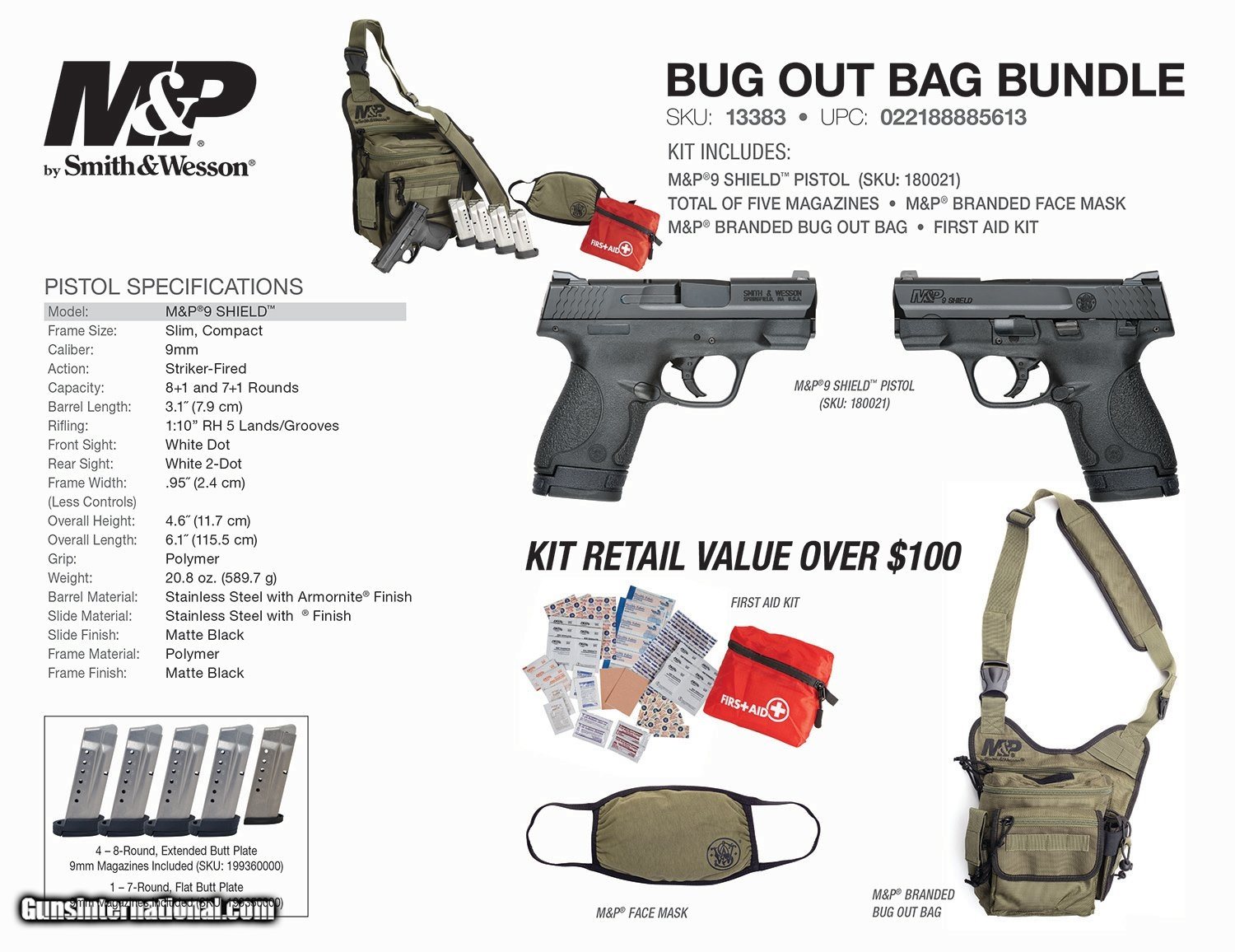 SMITH & WESSON M&P9 SHIELD BUG OUT BAG BUNDLE 9MM LUGER (9X19 PARA)