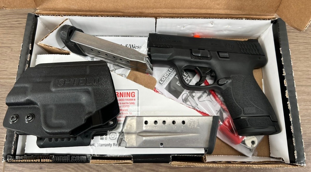 Description: Guns Listing ID: 917752 PISTOL: SMITH & WESSON MODEL M&P9 SHIELD M2.0, 3.1\" BARREL, SEMI - AUTOMATIC, 9MM, INCLUDES ORIGINAL BOX AND PAPERS, 3 MAGS, HOLSTER, NIGHT SIGHTS. IN VERY GOOD CONDITION OVERALL, LITTLE WEAR FROM USE. DEALER SPECS: SMITH & WESSON M&P9 SHIELD M2.0 FEATURES Smith & Wesson M&P pistols have a reinforced polymer chassis, superior ergonomics, and proven safety features. In designing the M&P, S&W considered the needs of military and law enforcement from every conceivable angle, so the M&P is the standard in reliability. M&P‚‚s patented take-down lever and sear deactivation systems allow for disassembly without pulling the trigger. The M&P Shield is easy to conceal, offering professional grade features with simple operation and reliable performance day or night. It puts the power and features of full sized M&P pistols into a slim, lightweight pistol the size of your hand. M&P M2.0 models feature aggressive grip texture for enhanced control, M&P M2.0 crisp trigger with lighter trigger pull, and a tactile and audible trigger reset. The stainless steel barrel and slide have an Armornite corrosion-resistant finish. This model has a black frame and slide finish, no manual safety, and Tritium Night sights, and three magazines. It includes one 7-round magazine and two 8-round extended grip magazine. SMITH & WESSON M&P9 SHIELD M2.0 SPECIFICATIONS Brand: Smith & Wesson Model: M&P9 Shield M2.0 Caliber: 9mm Luger Capacity: 7, 8 Action: Striker Fire Frame Finish: Matte Black OAL: 6.10\" Frame Material: Polymer Sight Style: Night Slide Finish: Black Armornite Slide Material: Stainless Steel Slide Description: Serrated Black Armornite Stainless Steel Grips: Textured Black Polymer Sight Configuration: Tritium Night Front & Rear Includes: 3 Magazines Safety: No Manual Barrel Description: 3.125\" Stainless Stee SOLD Manufacturer: SMITH & WESSON Model: M&P9 SHIELD M2.0 Caliber Info: 9MM LUGER (9X19 PARA) Condition: Used - Non-Certified Barrels: 3.1 BARREL Finish: BLACK |