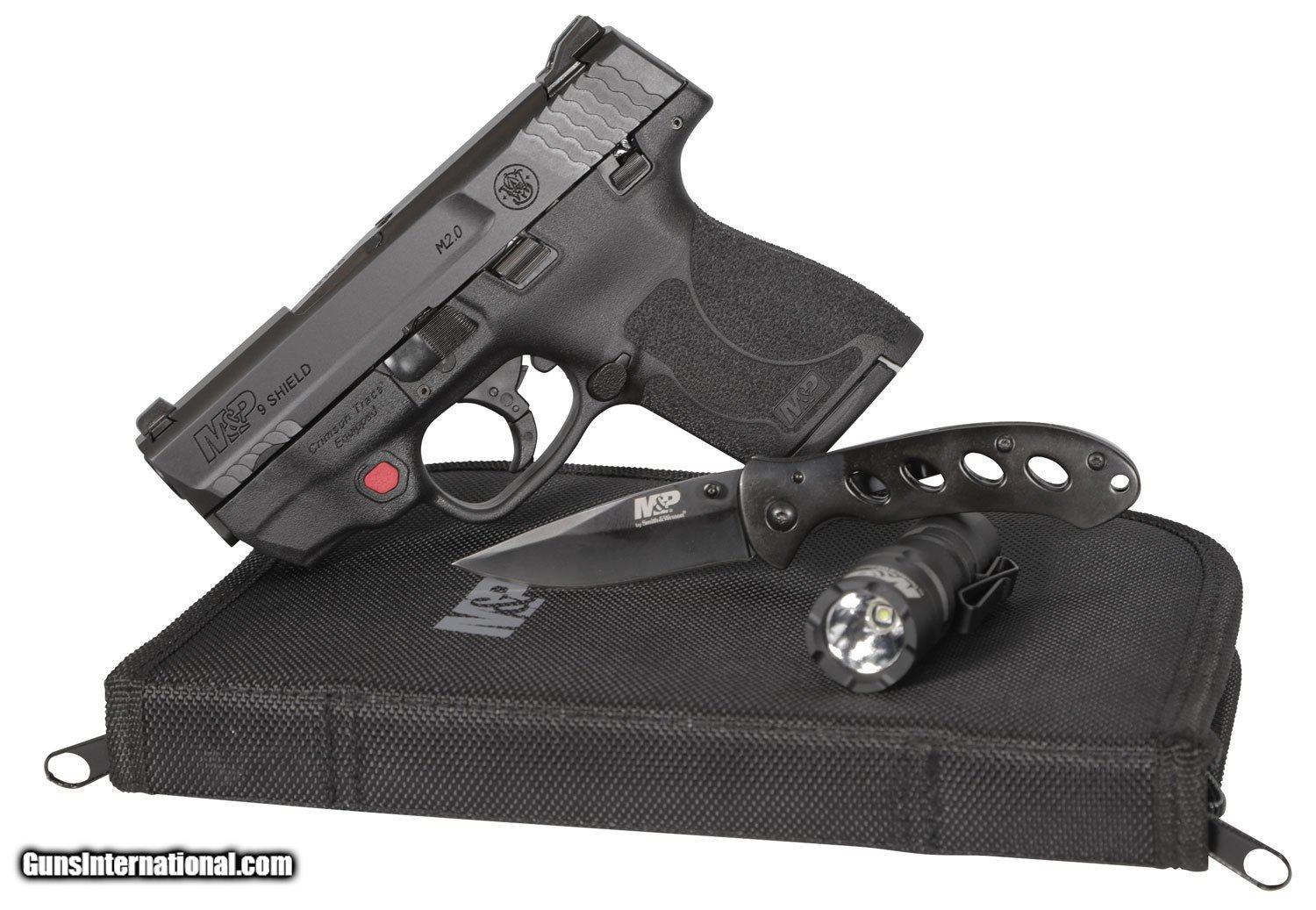 Description: Guns Listing ID: prod9263 An updated version of the original MP9 the Smith Wesson MP9 M2.0 is a full-sized striker-fired semi-automatic handgun chambered in 9mm with a 171 capacity. The polymer frame has been upgraded with an extended stainless steel chassis along with a low bore axis resulting in reduced muzzle rise while the crisp trigger offers a lighter pull. The aggressively textured grip with four interchangeable panels employs a positive hold while the Armornite finish resists corrosion and offers greater durability. Available with or without a thumb safety the MP9 M2.0 was designed for sporting and professional use and is also an ideal choice for personal protection and home defense. This package includes a case flashlight and knife. SOLD Manufacturer: SMITH & WESSON Model: M&P9 SHIELD M2.0 CARRY AND RANGE KIT Caliber Info: 9MM LUGER (9X19 PARA) Condition: new Barrels: 3.1 BARREL |
