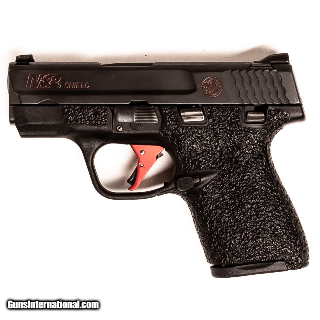Description: Guns Listing ID: 664212 With more than 1 million sold, the M&P Shield is a popular daily carry sidearm. While Smith & Wesson is commonly known for their high-grade revolvers, they‚‚ve become a major contender in the semi-automatic handgun market thanks to rock-solid models like the M&P9 Shield. This M&P9 Shield has a red Apex trigger duty and carry kit installed and Handleitgrips. Red paint has been used to highlight the letters, numbers, and emblems on the slide. Purchase includes one 7-round magazine, one 8-round magazine, and AmeriGlo day/night sights (not installed). Get the best bang for your buck when you get a Certified Used Firearm . When you see the Certified Used stamp on any of our firearms, you can be confident that you’re getting exactly what you want – a gun only in very good to excellent condition and held to the highest quality standard. All Certified Used Guns come with a ‘no questions asked’ return policy . PLUS, ALL CERTIFIED USED GUNS SHIP FREE SOLD Manufacturer: SMITH & WESSON Model: M&P9 SHIELD Caliber Info: 9MM LUGER (9X19 PARA) Condition: Used - Certified Barrels: 3.1 barrel Finish: BLACK |