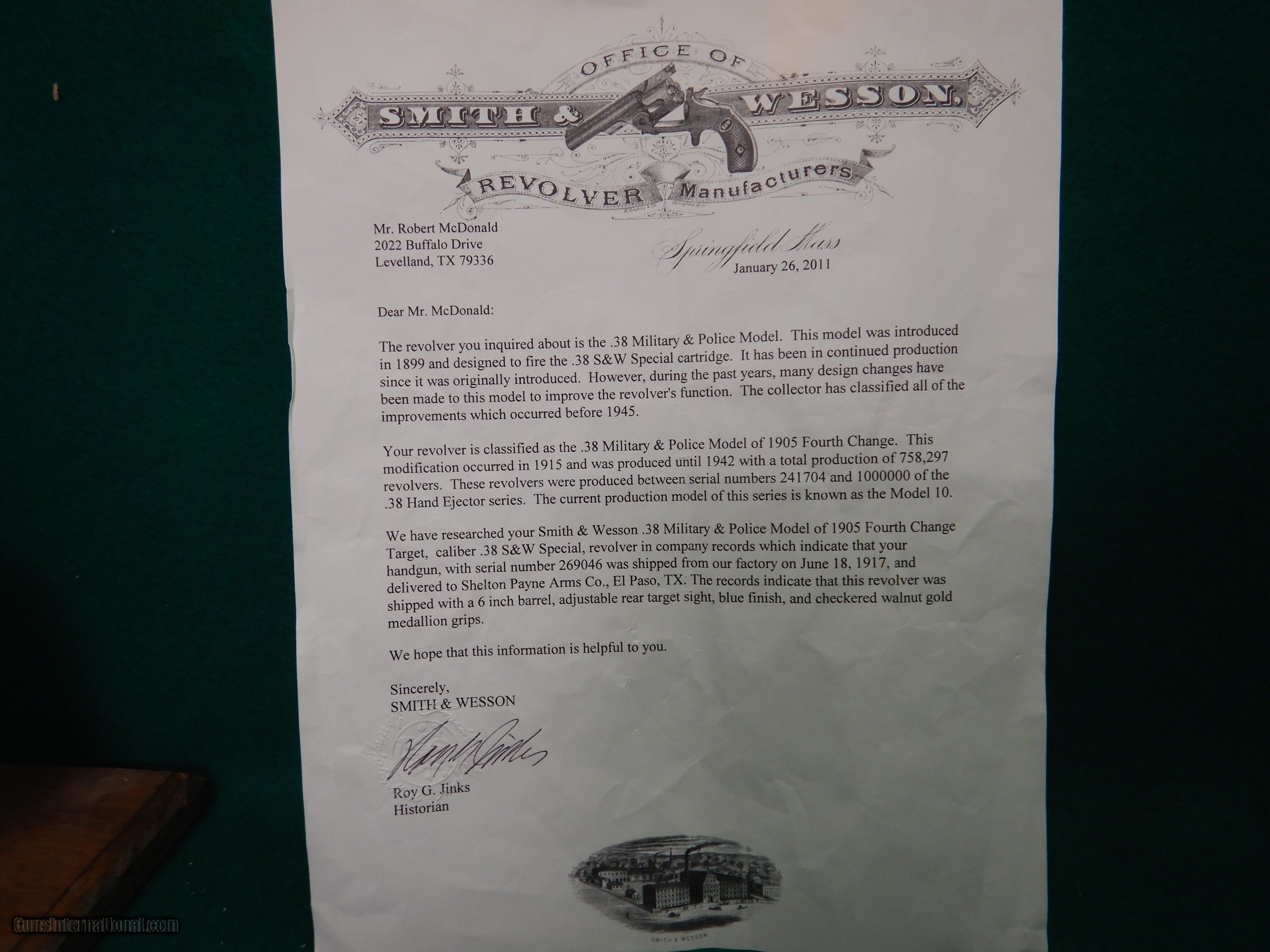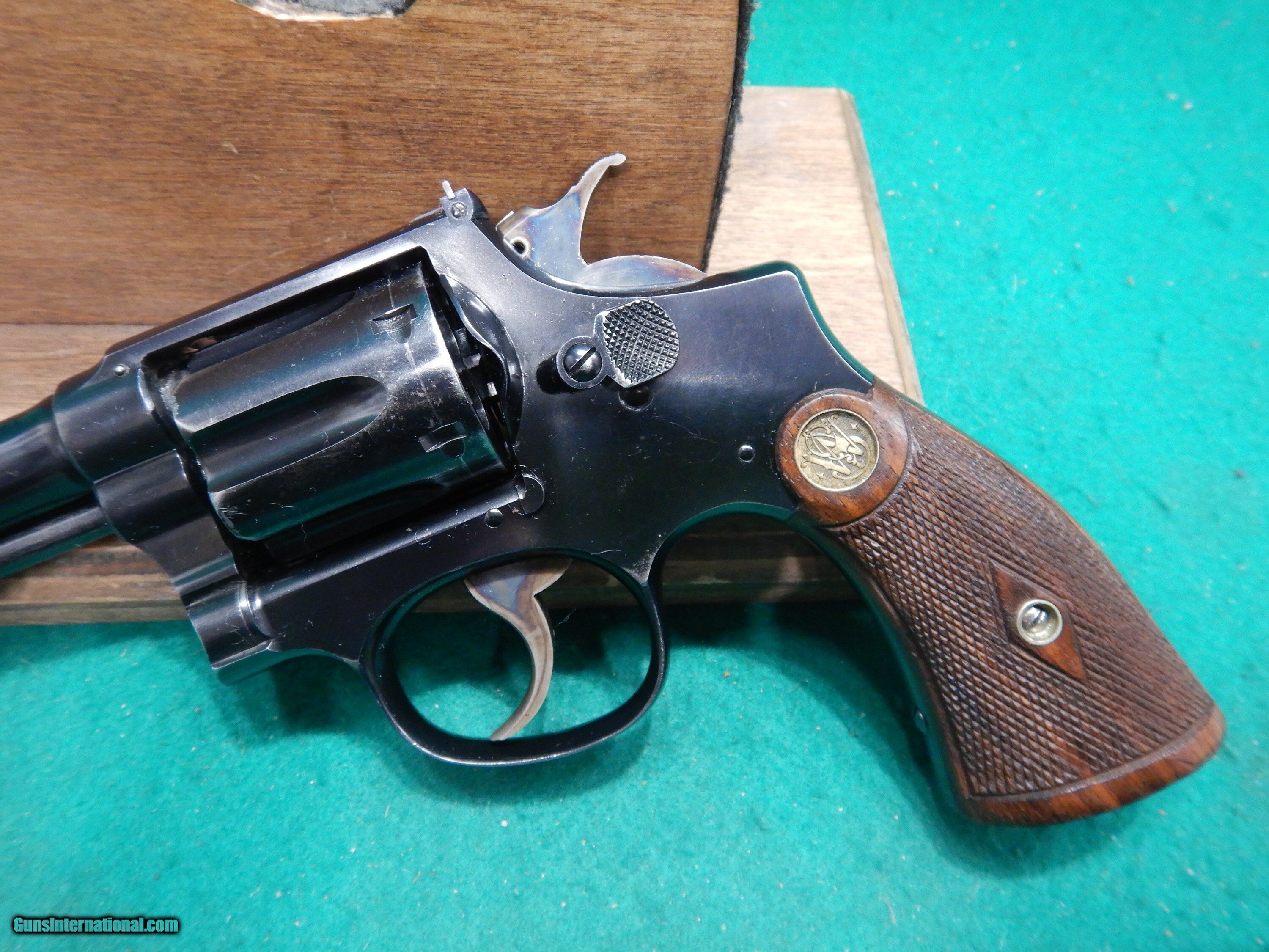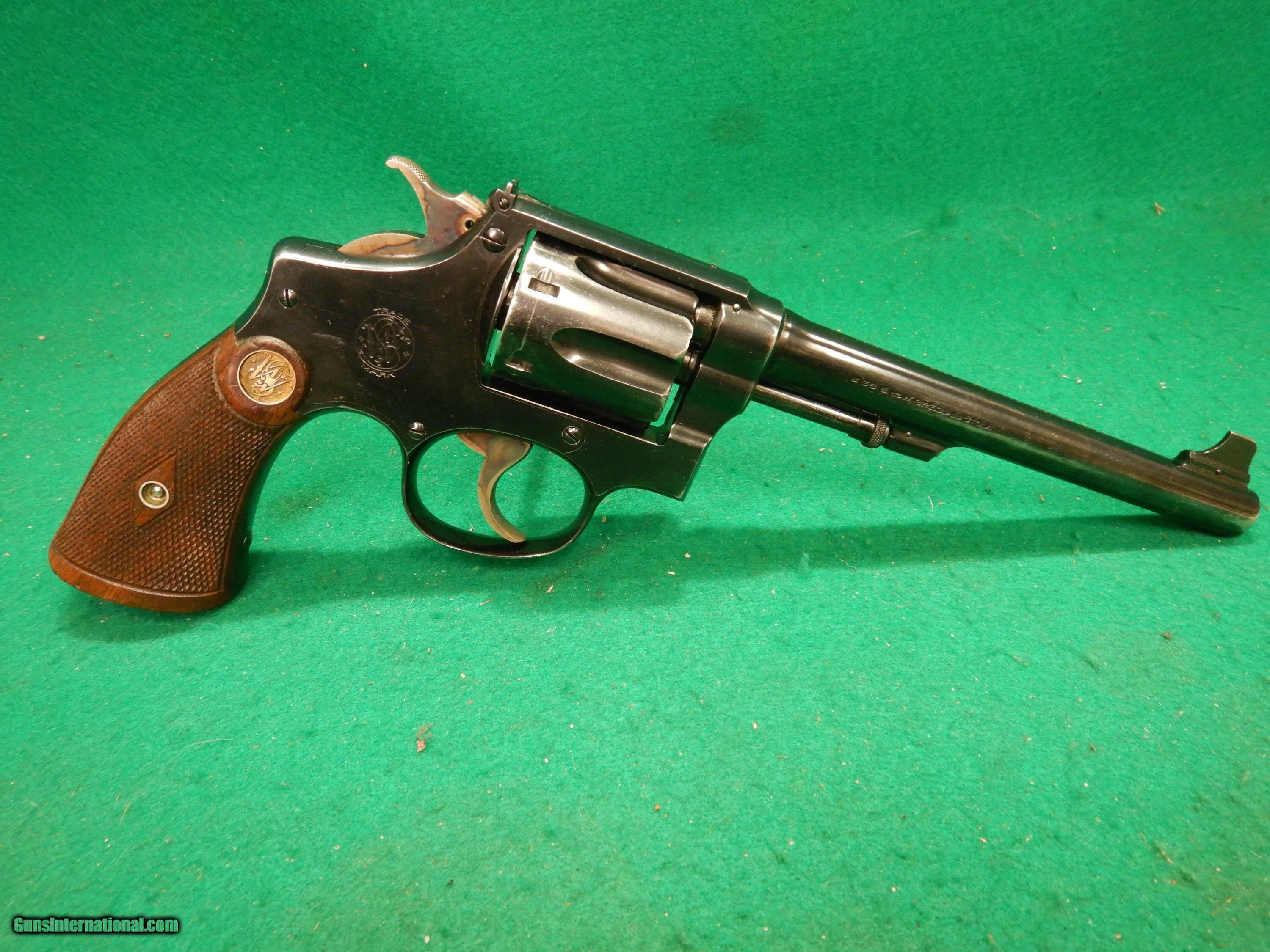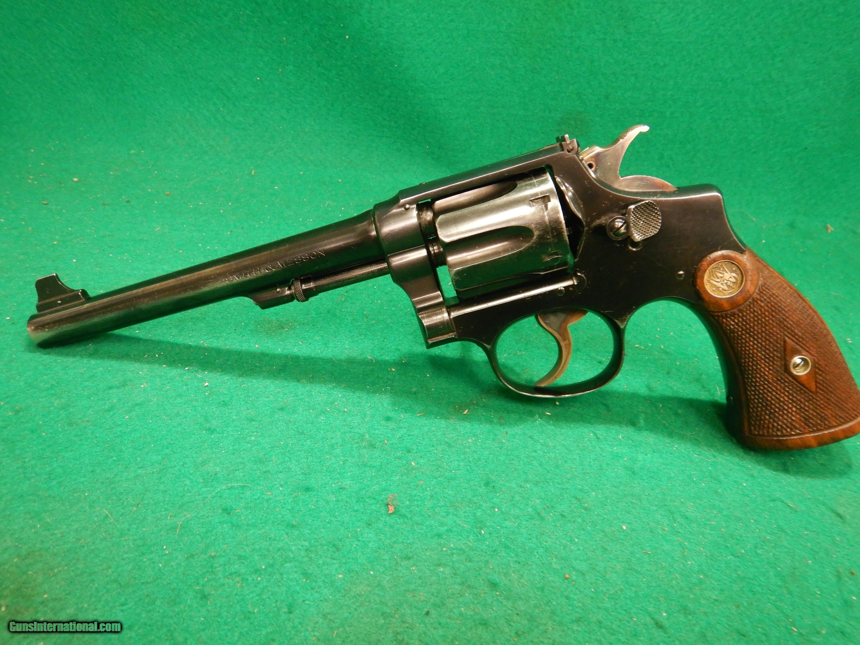 Description: Smith & Wesson Model 1905 4th Change Target Military & Police .38 SPL W/ Documentation. S/N: 269046. MFG: June 18th 1917. 6 " barrel with excellent bore, adj rear target sight, checkered walnut gold medallion grips. SALES PLEASE CALL OUR STORE AT 1-601-825-9087 ASK FOR JON OR ALYSSA IN INTERNET GUN TO COMPLETE PURCHASE. Checks and Money Orders: We accept personal and money orders. We accept Visa, MasterCard, Discover, and American Express. Please Note: That all card transactions (Credit/Debit) will be charged a 3% Credit Card Fee at the time of purchase. Layaway Terms: We offer layaway on most items for a 90-day period. The terms require a minimum down payment of 15% at the time of set up with no required payment plan for the remaining balance. Remaining payments are at the buyer’s discretion, but the full payment amount must be completed by the 90th day. If the buyer chooses to cancel a layaway, the buyer will incur a $50 restocking fee. California Sales We are enrolled in the California CFLC system and will ship qualifying firearms to any eligible FFL in California. Steps: Contact your local gun shop and have them email us a copy of their FFL and California Code Number to: vansfirearmsyahoo Alaska and Hawaii Sales Please carefully look at each and every photo to ensure the condition of the item(s) in question. We do our best to take accurate photos that not only show off the quality of our items, but to also point out any marks or flaws. There are extra shipping costs. Please request a quote before . Shipping Long Guns cost: $40.00 for Shipping UPS Ground Handguns cost: $50.00 for Shipping 2nd Day Priority Mail Ammunition and Parts Costs vary, please inquire for estimated shipping costs based on destination, package weight and size. WE DO NOT EXPORT FIREARMS Orders are normally shipped within 3 business days after receiving payment and FFL. But please allow 1 to 2 business days for us to process and ship your order. Cancellations – Firearm(s) cancellations will incur a 15% restocking fee, unless exchanged for an item(s) of equal or greater value. 3-day Inspection/ Return Policy The 3-day inspection period Is for defects and to make sure the gun received is the gun ordered. If there is a manufacturing defect with the firearm, please notify us immediately so that we can do our best to remedy the issue in a timely manner. After a gun has been transferred to the customer, all issues must be handled through the manufacturer. Contact Information If you need personal assistance with any questions concerning internet sales please contact us MONDAY THRU FRIDAY 9-5pm CENTRAL TIME (THIS DOES INCLUDE PAYING FOR ) at : 1-601-825-9087. Thank you. Jon & Alyssa Store Mailing Address: Van’s Sporting Goods 777 HWY 468 Brandon, MS 39042 EMAIL: vansfirearmsyahoo SOLD |