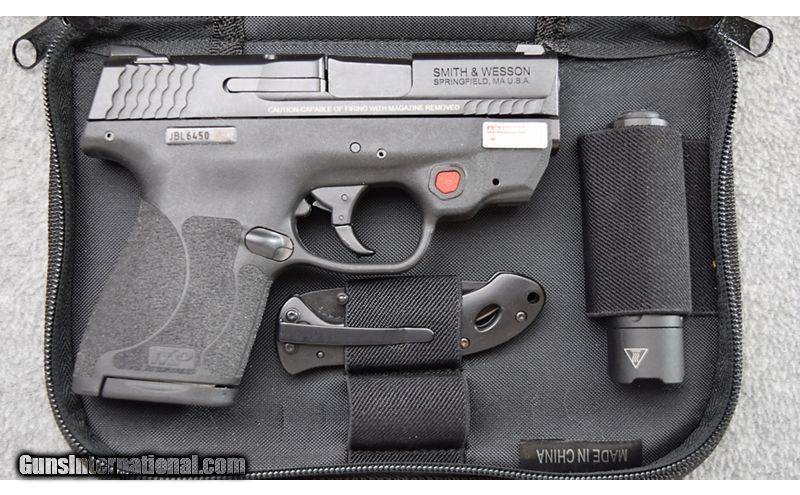 Description: This Smith & Wesson is in excellent overall condition showing only light use. Complete with original cardboard box, soft carry case, knife and flashlight! Built in Crimson Trace Laser! 9mm Luger SOLD Metal Condition: Excellent Bore Condition: Excellent Barrels: 3 Triggers: Factory Butt Pad: Textured Black Synthetic Grips Weight: 20 ozs. Sights: Three Dot White Sight System - Crimson Trace Laser Item Location: Wheeling |