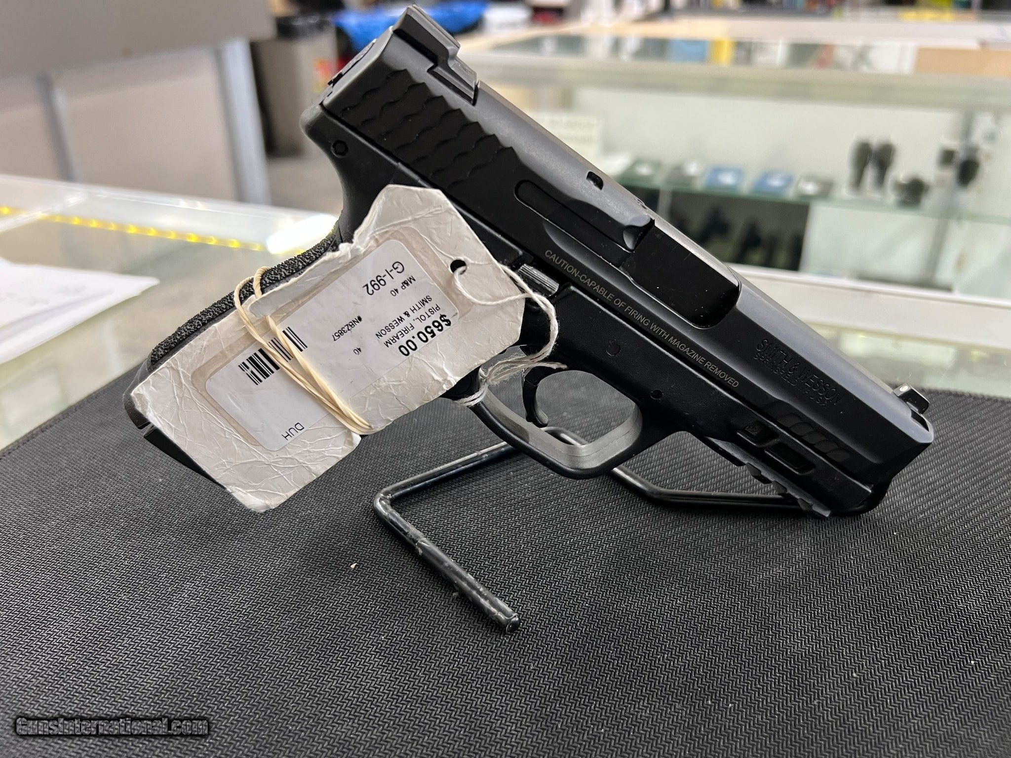 Description: Guns Listing ID: 734142 Action: Striker Fired Metal finish: Armornite Product weight: 25.9 oz. Manual Safety: No Activity: Shooting Barrel length (in.): 4.25 Handedness: Right Product Type: Pistol Manufacturer warranty - labor: Lifetime limited Product length (in.): 7.4 Front sight: Steel-white dot Magazine capacity: 15+ Manufacturer warranty - general: Lifetime limited Rate of twist: 1 in 10 in. Rear sight: Steel-white 2-dot Caliber: .40 S&W Rifle Ammo Type: Centerfire SOLD Manufacturer: SMITH & WESSON Model: MP40 M2.0 Caliber Info: .40 S&W Condition: Used - Non-Certified Barrels: 6 BARREL Finish: BLACK |
