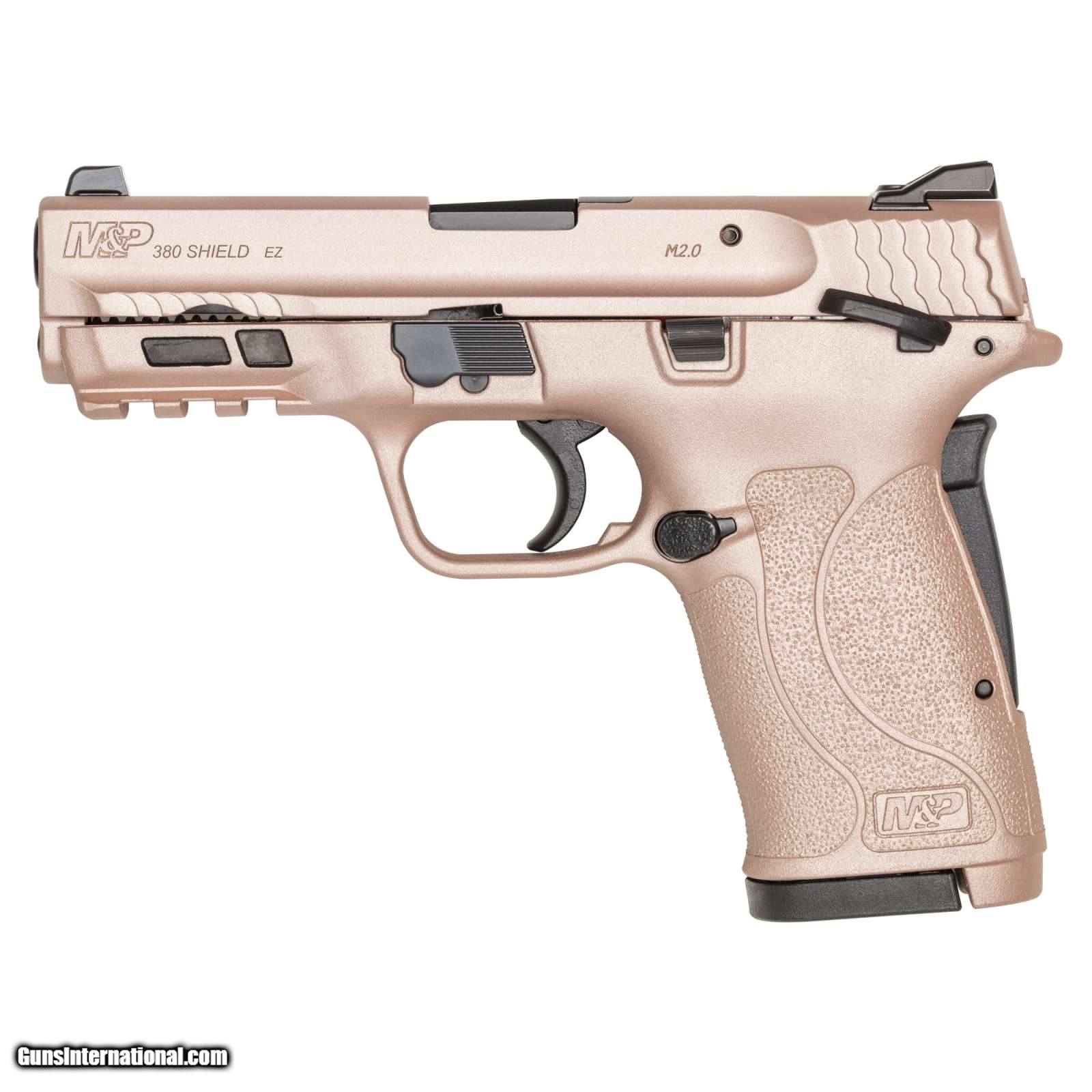 Description: Guns Listing ID: prod303143 Smith & Wesson M&P 380 SHIELD EZ M2.0, Internal Hammer Fired, Semi-automatic Pistol, Polymer Frame Pistol, Micro-Compact, 380ACP, 3.675\" Barrel, Cerakote Finish, Rose Gold, 3-Dot Sights, Manual Thumb Safety, 8 Rounds, 2 Magazines SOLD Manufacturer: SMITH & WESSON Model: SHIELD 2.0 EZ Caliber Info: .380 ACP Condition: new Barrels: 3.68 BARREL Finish: ROSE GOLD |