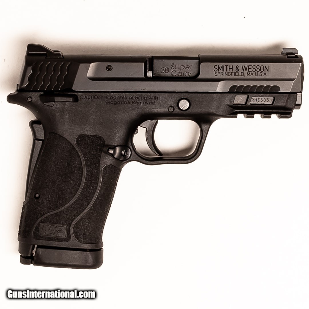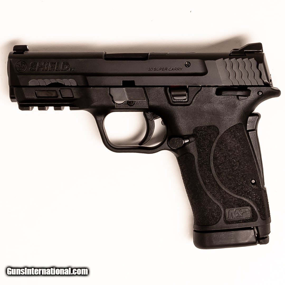 Description: Guns Listing ID: 598620 The Smith & Wesson M&P Shield EZ is an excellent self-defense sidearm that recently won the Golden Bullseye award. It features an internal hammer, external safety, grip safety, easy to rack slide, and a picatinny rail for attachments. Whether you‚‚re a seasoned pistol marksman or first-time shooter, this handgun is a great buy. 2-10 round magazines, the manual, and box are included SOLD Manufacturer: SMITH & WESSON Model: SHIELD EZ Caliber Info: .30 SUPER CARRY Condition: Used - Certified Barrels: 3.5 BARREL Finish: BLACK |