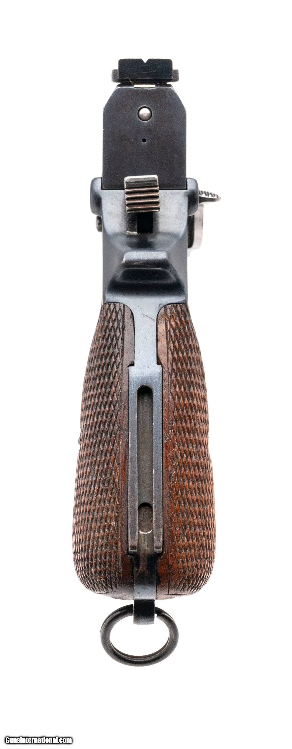 Description: "Serial number 491. Made in 1897. 7.65 Mannlicher caliber with a 6" barrel. This gun is in excellent condition as restored a long time ago. Grips are excellent. This is a very rare early automatic made by Sig Neuhausen. There is a BERN proof mark on the barrel. This is a very unique gun having the adjustable target sights instead of the standard fixed sight. SOLD Antique: Yes |
