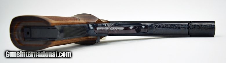 Description: Smith & Wesson 41 .22 LR caliber pistol. 50th Anniversary special edition engraved and gold inlaid. A beautiful and desirable target pistol. Mint condition with box and presentation case.