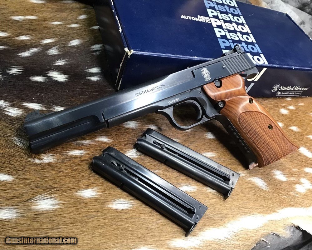 Description: Smith & Wesson model 41, wearing a 7 inch barrel, Target adjustable sights and contoured checkered wood target grips. Comes in unnumbered factory box with manual and extra mag. Pistol appears unfired since factory, 99% finish, factory tapped and threaded for optics. Best in class trigger on the model 41 Smith & Wesson has won many shooting awards since models inception. Silky smooth operation and unequaled accuracy are the trademarks of this model. Add 3% if paying with credit card. Free shipping for US Veterans and retired LEO. God Bless America from a proud American, and a Viet Nam Vet , thankful for our freedoms.. paid for by the Blood ,Sweat and Tears of our brave men and women in uniform. Ten Below Firearms is a Veteran owned and operated business. We specialize in out of production models of high quality firearms. We love to ship! We ship to all states where legal, just give us a call! Handguns normally ship for $35 and Long guns for $45 up to $75 for extra length long guns. That's 2-3 day USPS Priority shipping, Delivery conformation and with tracking number. Optional Postal insurance is additional $1.70 per $100 and highly recommended. We are OPEN BY APPOINTMENT ONLY FOR IN PERSON VISITS, We trade, sometimes. Layaway:If needed we offer a 60 day layaway program. Terms, 1/3 of purchase price down, 1/3 due in 30 days, and the final third to include card fees and shipping due at 60 days. Funds are non transferable and non refundable .Layaway is not available on negotiated prices. SOLD Handgun Caliber: .22 Long Rifle Manufacturer: Smith & Wesson Model: 41 Serial Number: UBA9659 Barrel Length: 7 inch Condition: Excellent Metal Condition: Excellent Wood Condition: Excellent Bore Condition: Excellent Barrel Type: Heavy target Triggers: Target Finish: Blued Sights: Target adjustable Manufacture Date: 1998-99 Extras: Extra mag Case: Box Item Location: Mn |