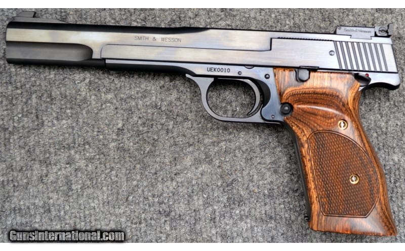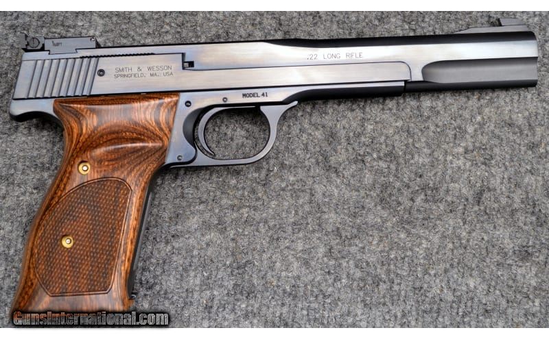Description: For your consideration, a Smith & Wesson model 41 chambered in .22 Long Rifle. Produced since 1957, the model 41 is S&W's top of the line rimfire target pistol. While a classic in its own right, the model 41 is still competitive in shooting matches to this day. .22 Long Rifle SOLD Metal Condition: Excellent Wood Condition: Excellent Bore Condition: Excellent Barrels: 7 Triggers: Serrated Face Weight: 2.75 lbs Sights: Iron Sights Item Location: Hamburg, PA |