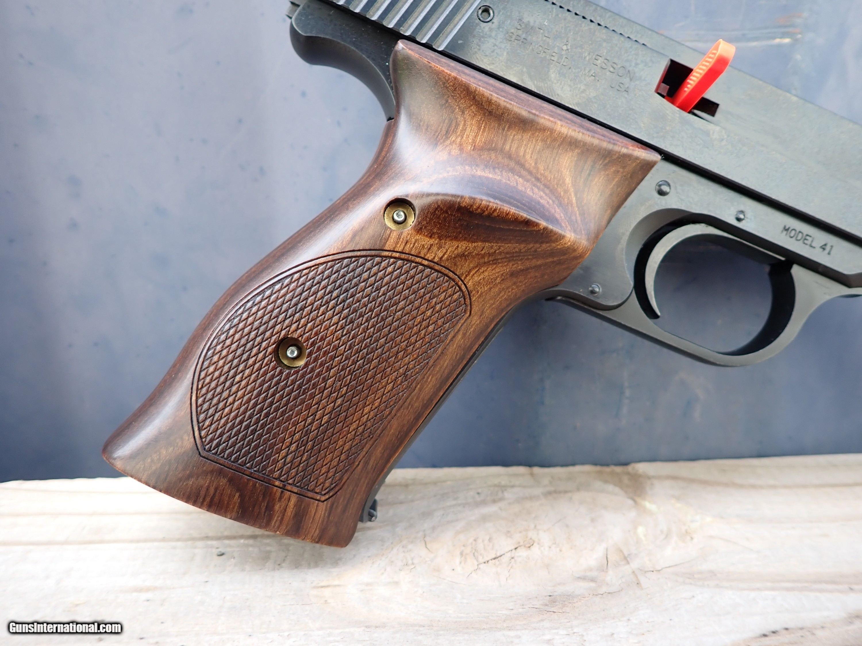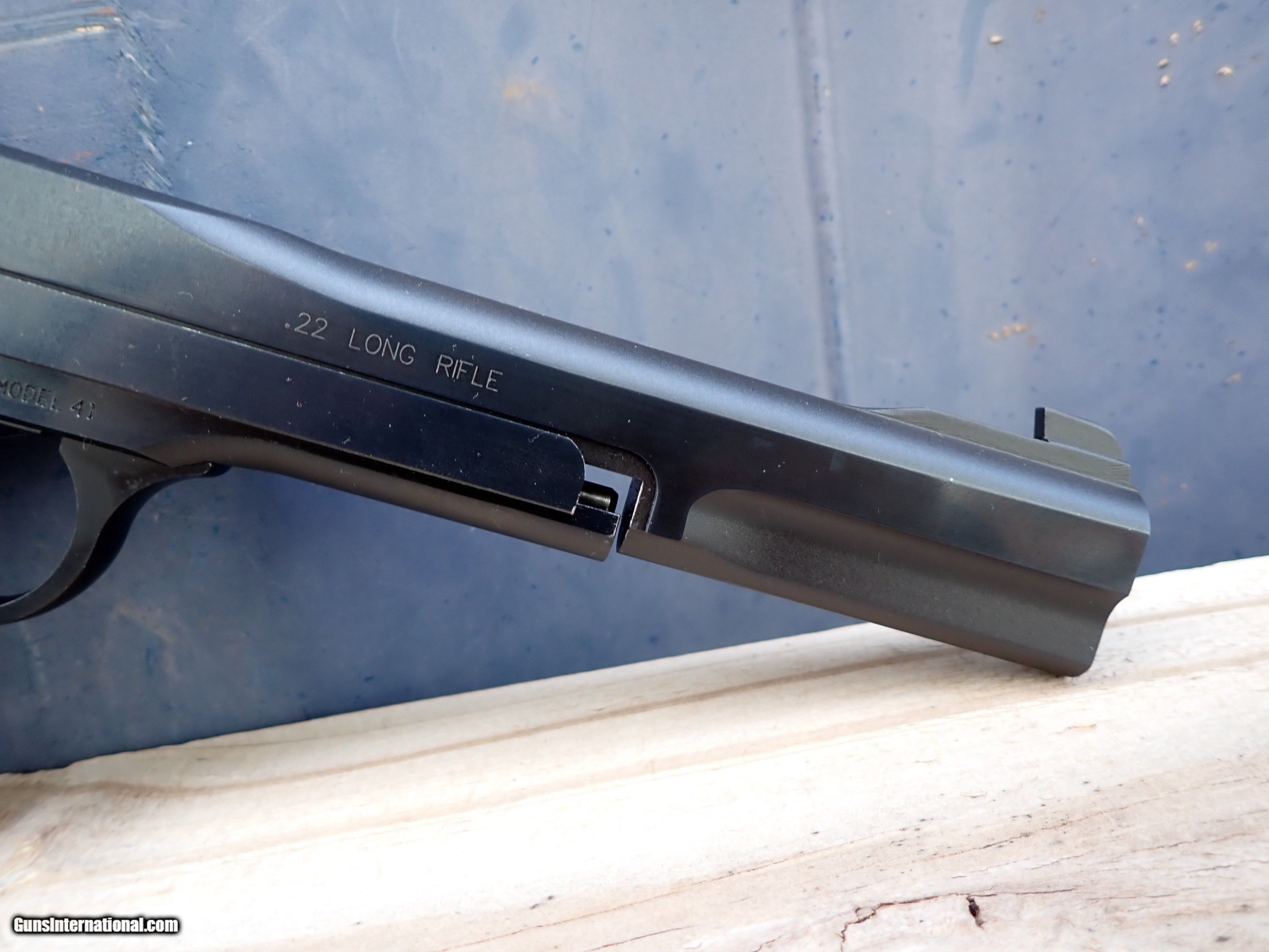 Description: Here is a S&W 41 chambered in .22lr it is in excellent condition. The previous owner told us that he had fired 300rds through it and that it functions flawlessly with CCI Standard Velocity which is the S&W recommended load for these pistols. He also said he measured the trigger pull at 2 1/2 pounds. Comes with the original box, papers, (1) magazine, and a Weigand Machine Steel rail that has never been installed and remains in the packaging. Thanks for looking! $25 shipping, Alaska and Hawaii will be a little more for shipping. Please call with any questions. Please click the BUY NOW button to purchase this item. We are required to charge 8.25% for Texas residents. There is a 3.5% fee if paying by credit card. SOLD Handgun Caliber: .22 Long Rifle Manufacturer: S&W Model: 41 Serial Number: UER1173 Barrel Length: 7 Condition: Excellent Metal Condition: Excellent Wood Condition: Excellent Bore Condition: Excellent |